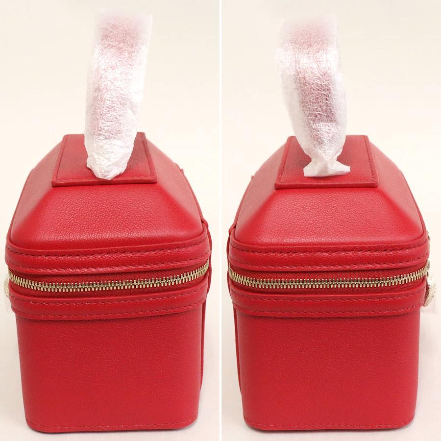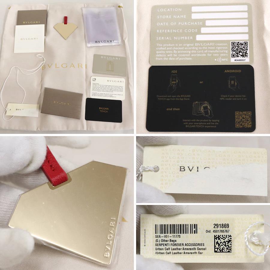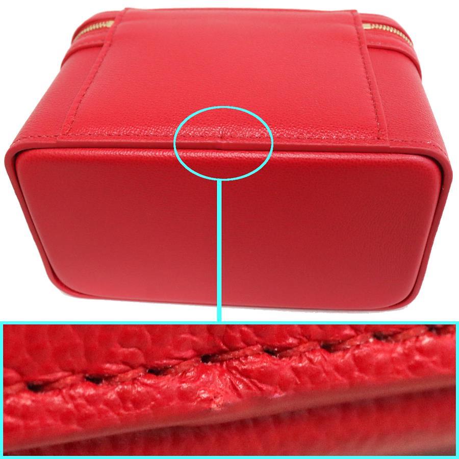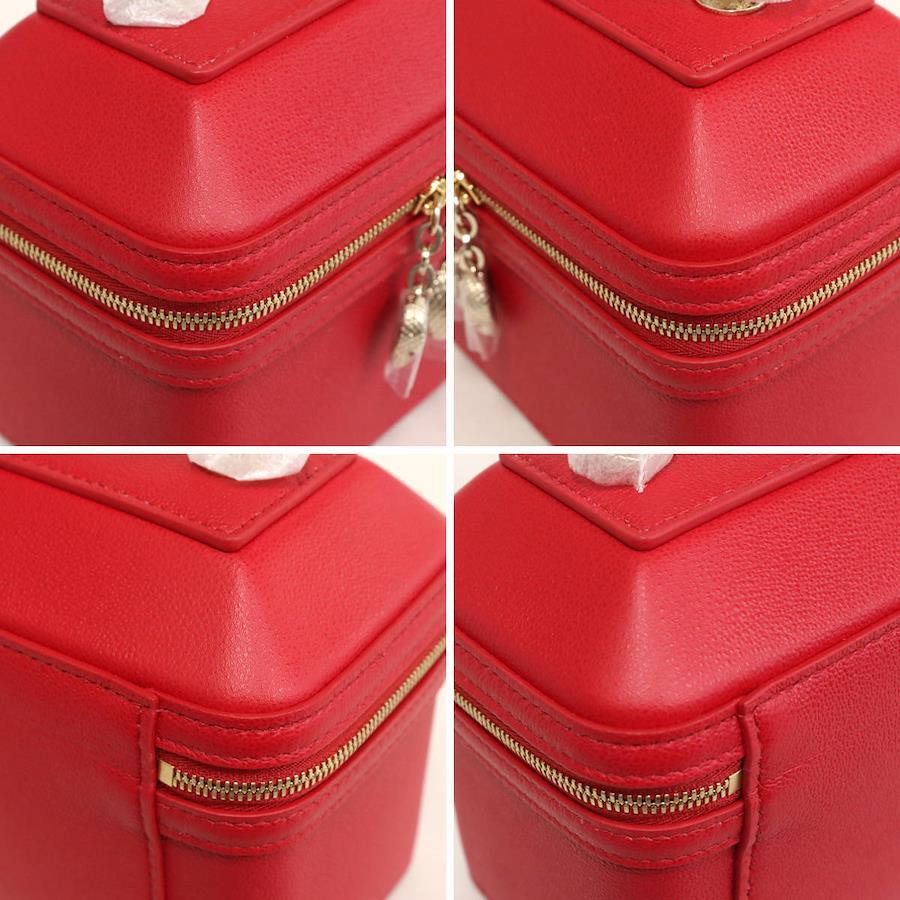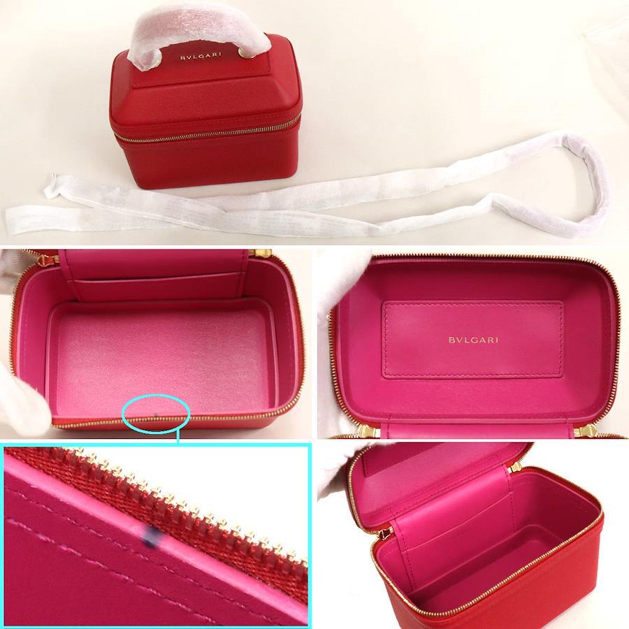 ブルガリのセルペンティ バニティ2wayバッグ レッド(291869)の中古品です。写真9枚目のようにバッグ内側に黒い汚れがあります。バッグ外側の背面下部中心にわずかに擦れがあります。写真はありませんが、内外箱に傷があります。購入証明書が付属しますが無記入で、店舗登録がされていません。NFC ICチップが内蔵されています。+---+---+---+---+---+。{状態}外側A内側AB{素材}レザー{サイズ}約W16cm × H12.5cm × D9.5cm。{その他}内ポケット×1。{付属品}内外箱,ショルダーストラップ,保存袋,冊子,購入証明書(未記入),手鏡,レインカバー{お問合せ商品番号}25066016+---+---+---+---+---+。