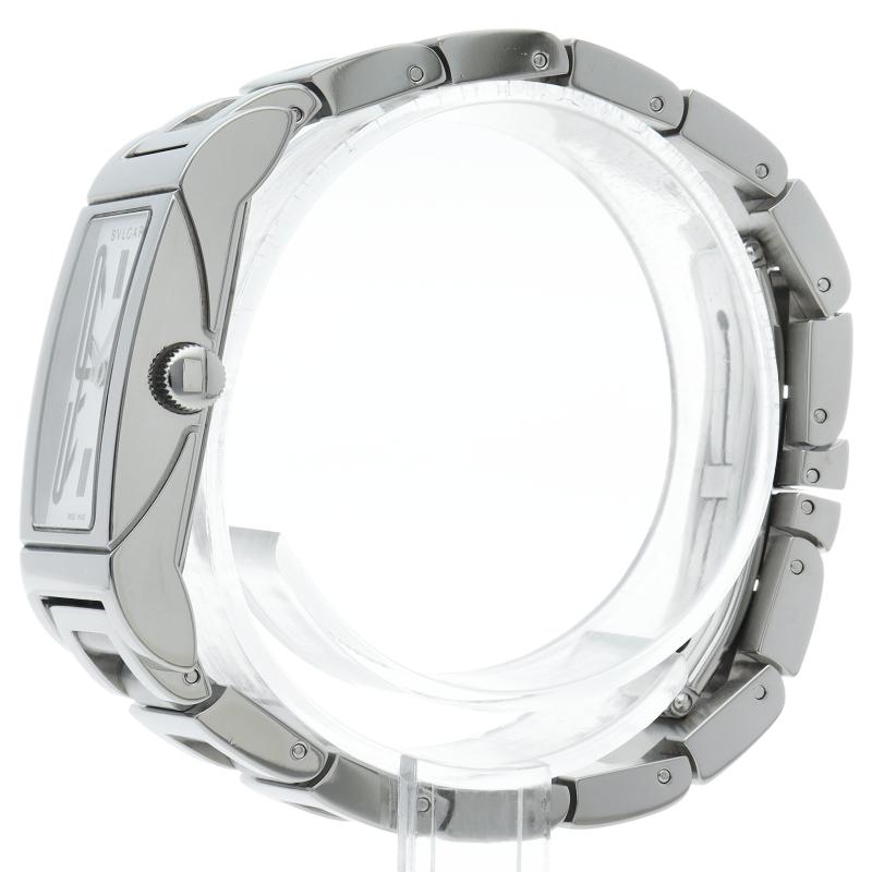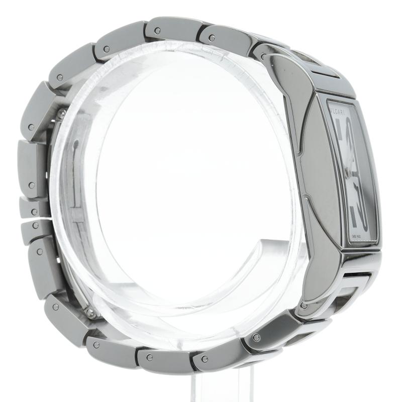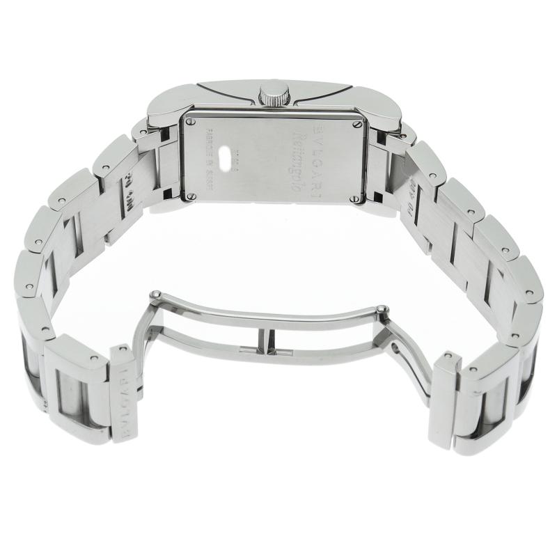 商品説明:1930年代のイタリアの工業デザインにインスパイアされた独特なデザインが人気のブルガリの「レッタンゴロ」です。3時と9時のインデックスが特徴的。さりげない高級感をお楽しみいただけます。 RT39S/RT39WSS