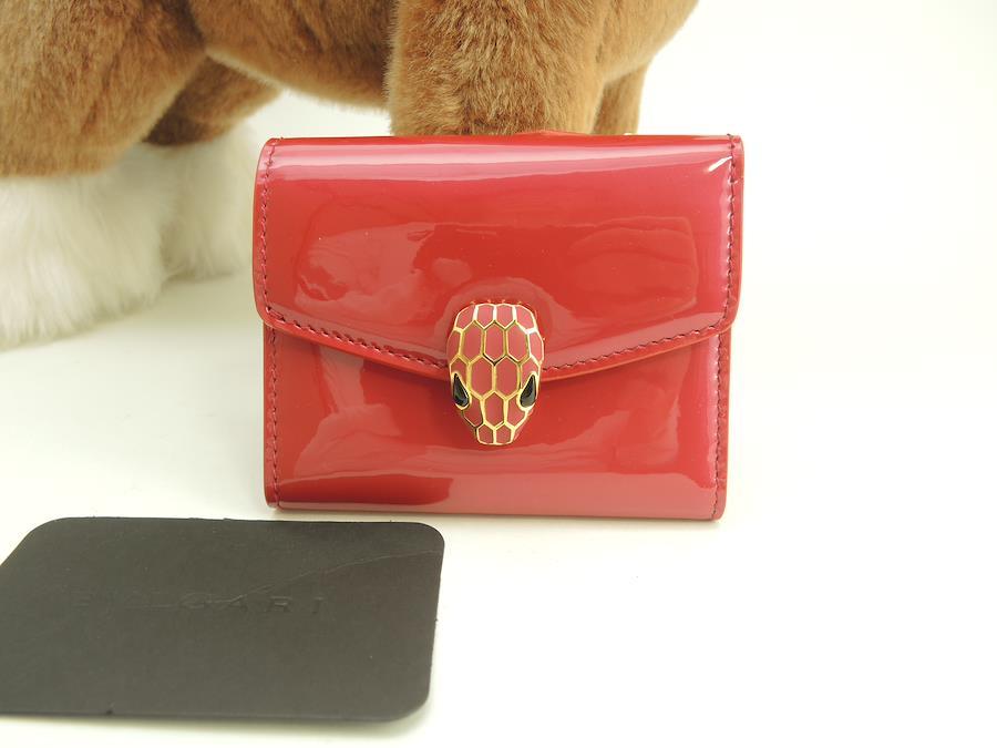 品名 : ミニウォレット コンパクト財布 三つ折り財布 スモールウォレット トリフォルドメーカー : ブルガリ(BVLGARI)型番・素材 : パテントレザーライン・色 : セルペンティ フォーエバー ディープピンク ゴールド金具参考定価 : 99000円サイズ : W9.5 x H7.8 x D3 cm製造番号 : 元から無し総重量 : 80g 本体重量 : 79g付属品 : 写真の中に写っているものです