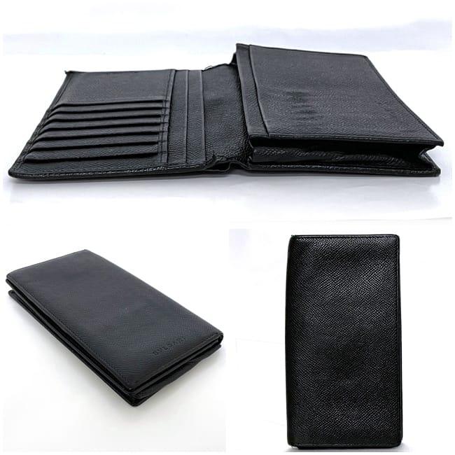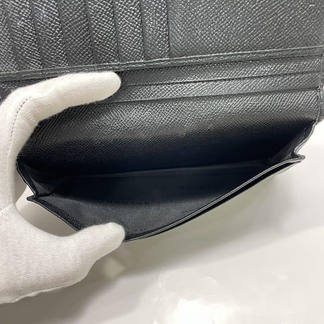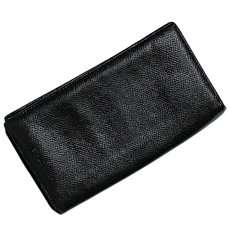 ブルガリ 二つ折り 長財布 ec-23397 ブラック 財布 レザー 中古 BVLGARI 札入 ロング ウォレット 定番 人気 メンズ レディース 黒色 黒 お洒落 革 小物 シンプル ワンポイント エレガント 薄い 薄型 男性 女性 ブランド財布 高級感 上品 ブランド 本物 鑑定済み