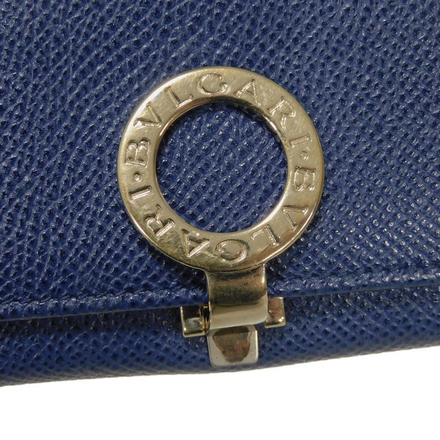 | 型押しカーフレザーにブルガリのロゴクリップがあしらわれた「ロゴ クリップ カードホルダー」二つ折りカードケースです。 |