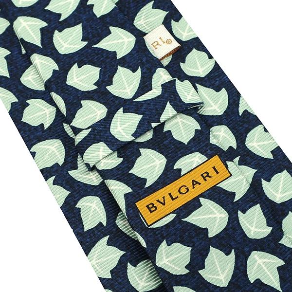 ブルガリ BVLGARI ネクタイ リーフ柄 10cm シルク ネイビー×グリーン 紺 緑 葉っぱ 植物柄 - メンズ定番 人気 美品 【中古】
