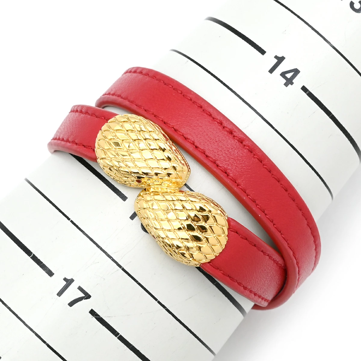 ▲クリックで拡大されますブルガリ BVLGARI ブレスレット セルペンティ フォーエバー レザー ブレス セルペンティ レザー メタル レッド 赤 スネーク 蛇 ゴールド金具 - レディース定番 人気 美品 【中古】