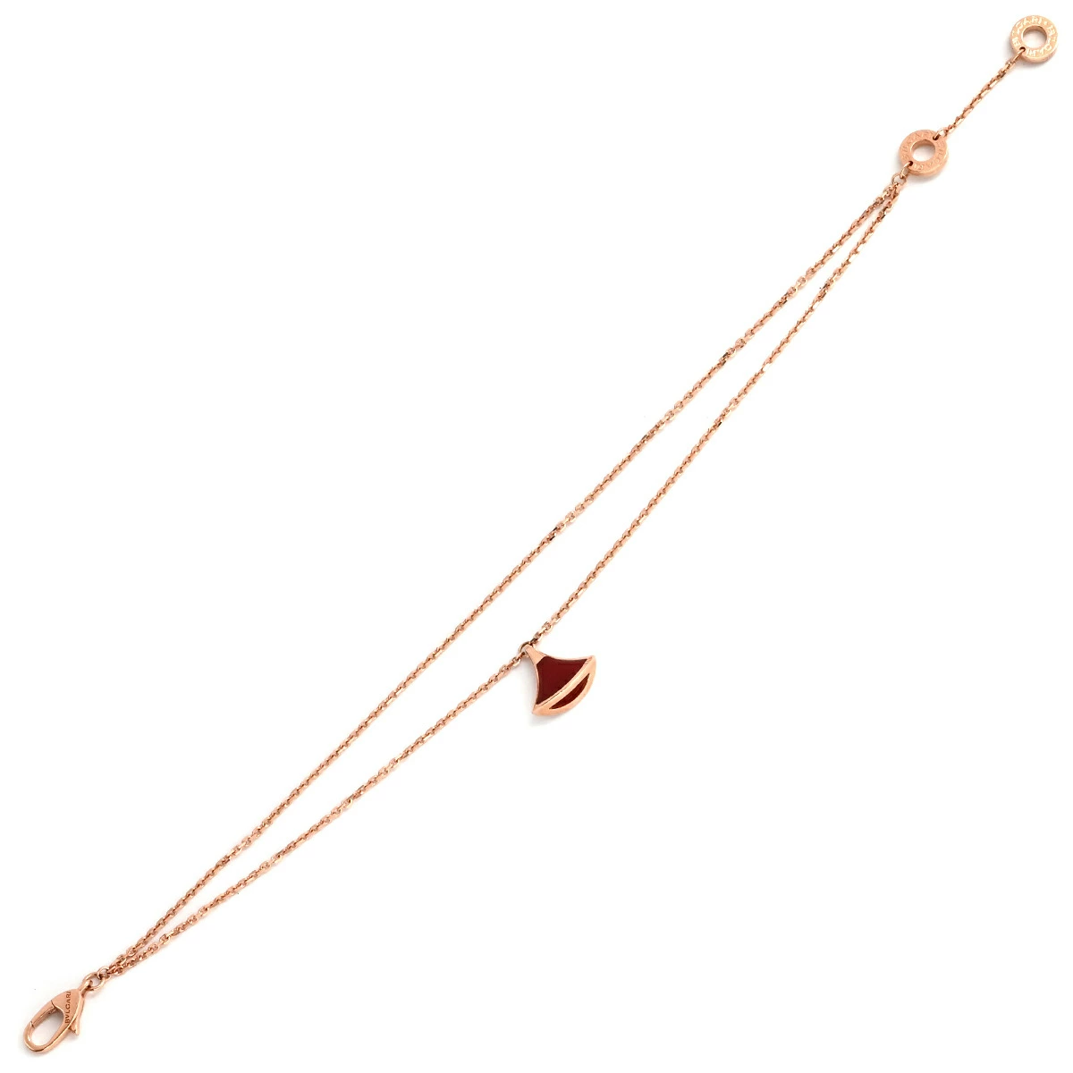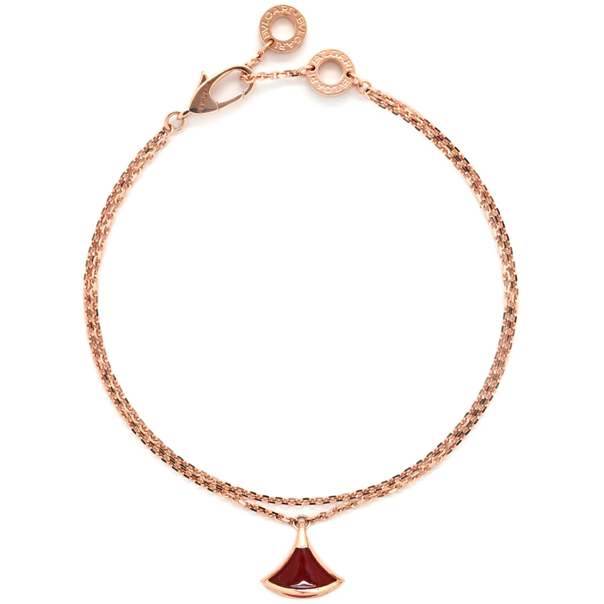 ▲クリックで拡大されますブルガリ BVLGARI ブレスレット ディーヴァ ドリーム ディーヴァ K18PG カーネリアン ローズゴールド Wチェーン Au750 18K #SM レディース 【箱】定番 人気 美品 【中古】