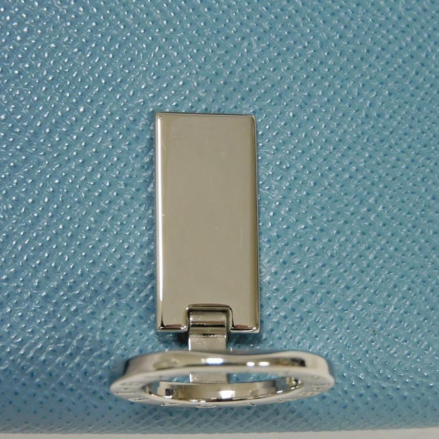 | 型押しカーフレザーにブルガリのロゴクリップをあしらった「トリフォールド ウォレット」三つ折り財布です。 |
