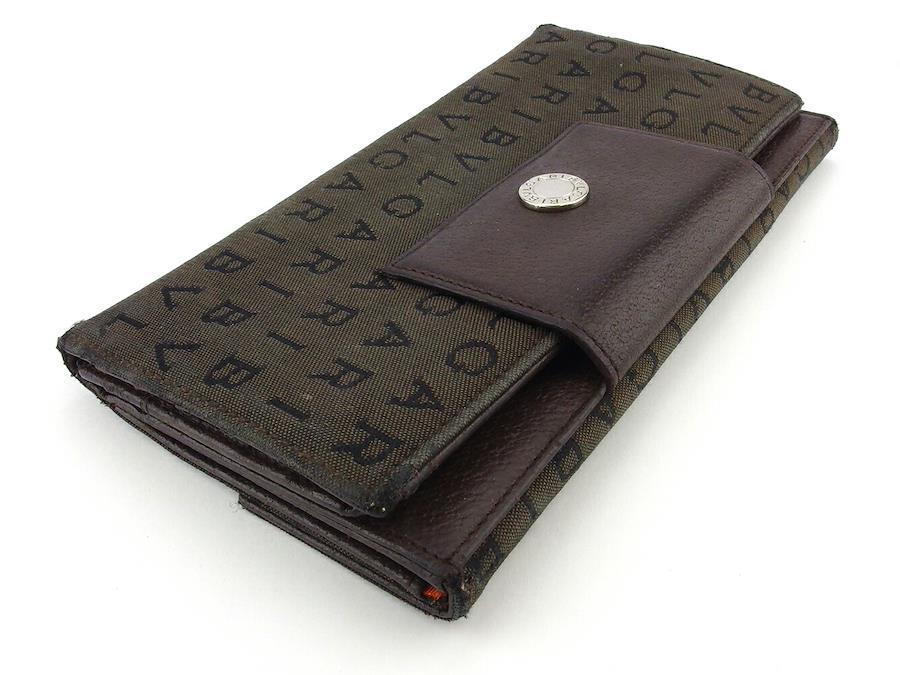 Bvlgari Logomania Long Wallet in Brown, Black, and Silver, Women's, Pre-Owned
