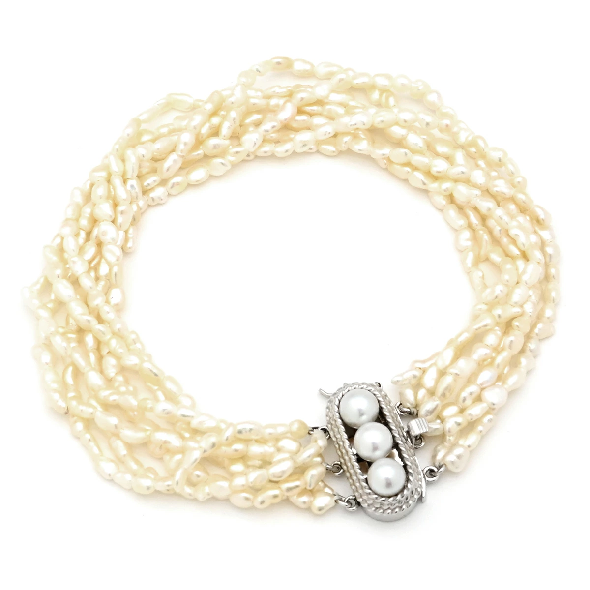 検索用キーワード:【【 ノンブランド NON BRAND ブレスレット パール 7連 K14WG/パール シルバーXパールホワイト レディース定番 人気 美品 【中古】】 【ノンブランド NON BRAND】