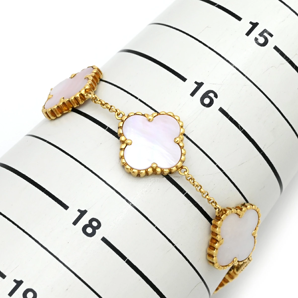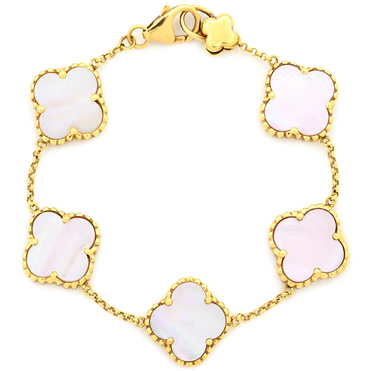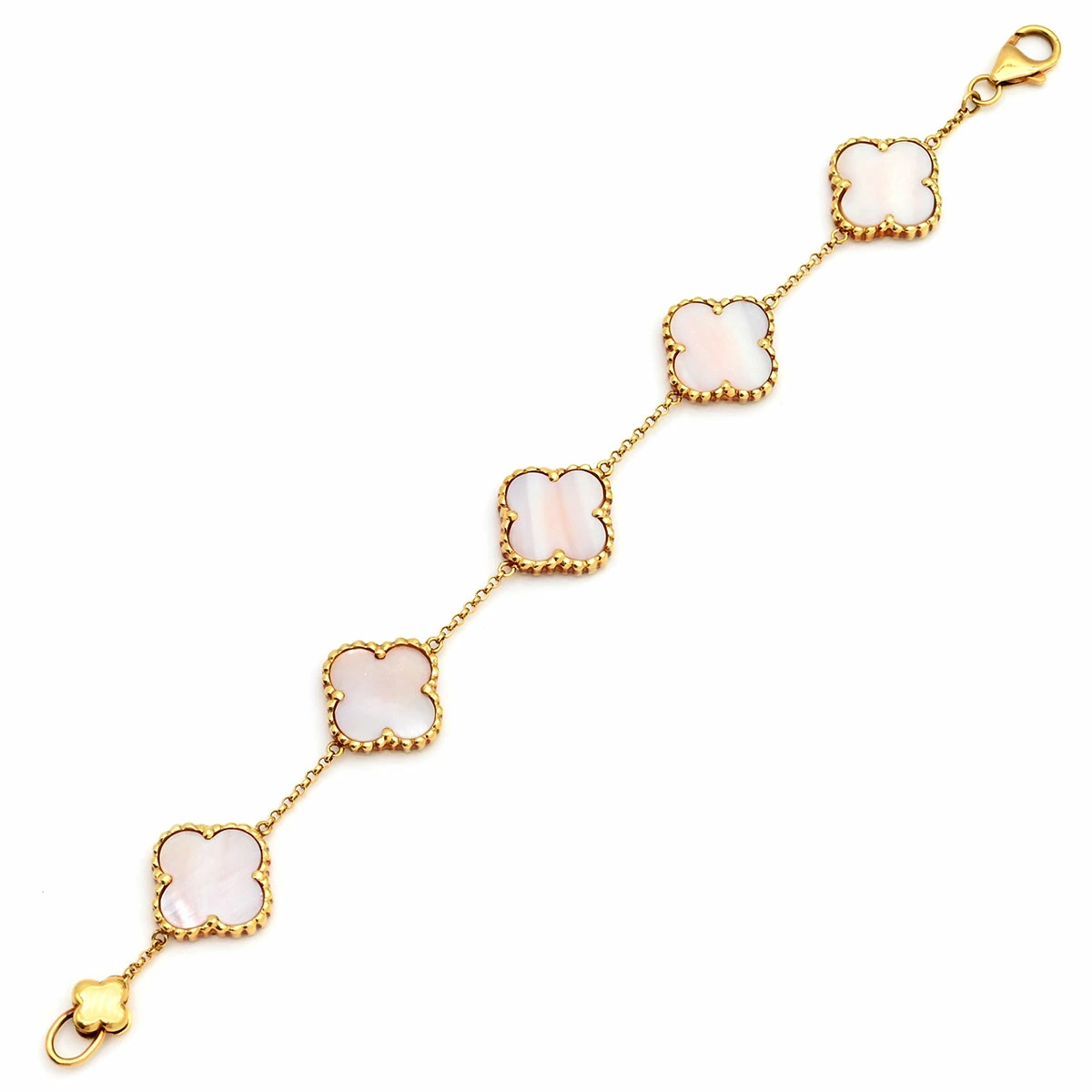 ▲クリックで拡大されますノンブランド NON BRAND ブレスレット フラワーモチーフ シェルブレスレット K18YG シェル イエローゴールド 天然シェル フリーフォーム 淡桃色 ゴールド金具 - レディース定番 人気 美品 【中古】