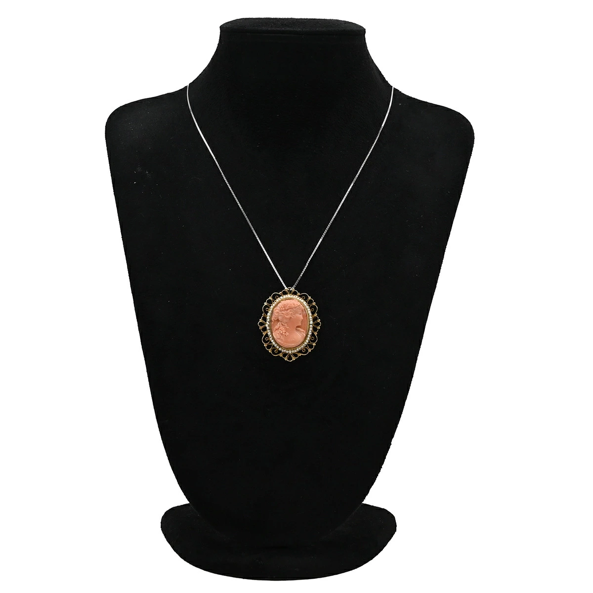 検索用キーワード:【【 ノンブランド NON BRAND ブローチ カメオ K14YG/珊瑚(コーラル) イエローゴールド×パールホワイト肖像 彫刻 小粒パール×珊瑚 ペンダントトップ - レディース定番 人気 美品 【中古】】 【ノンブランド NON BRAND】【-】