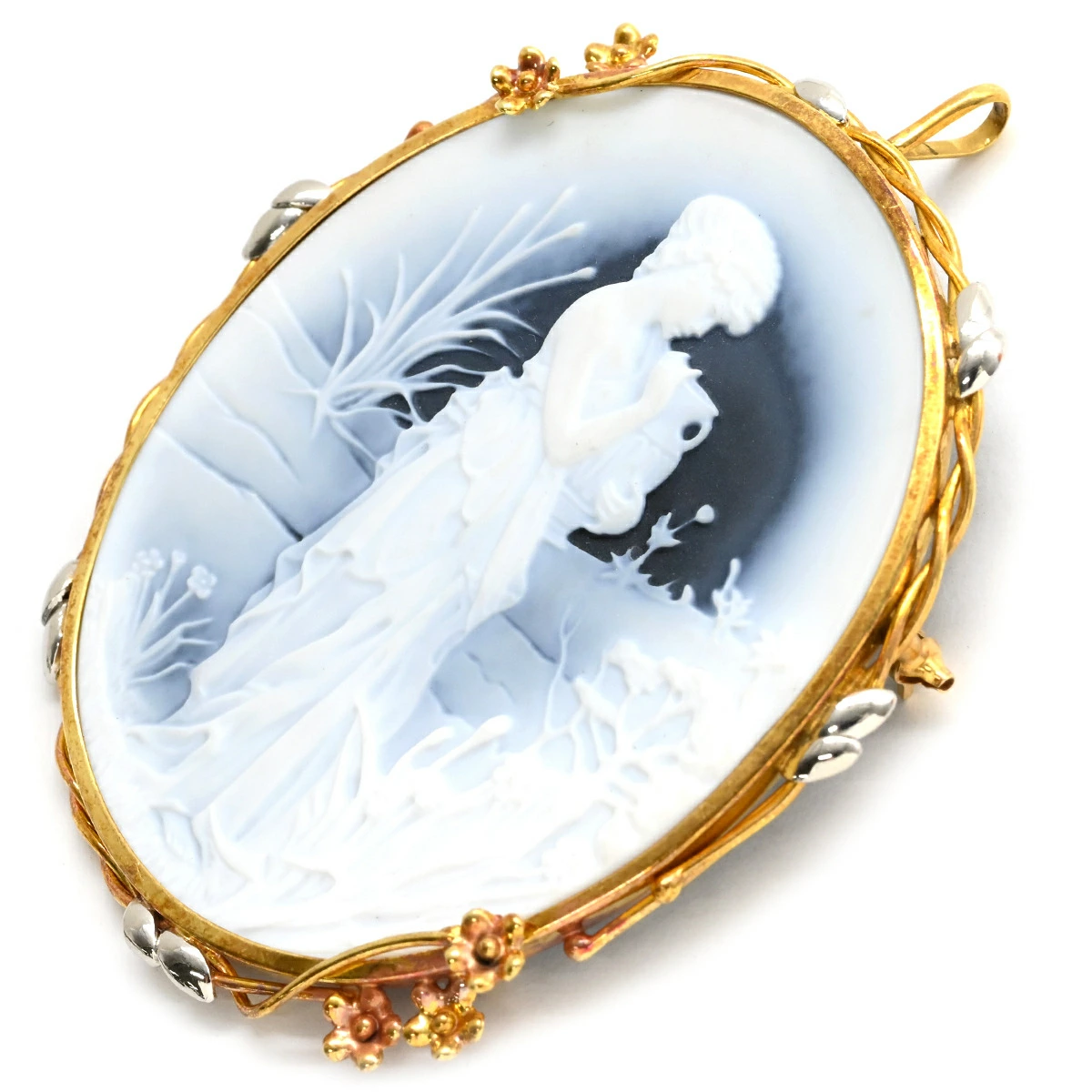 ▲クリックで拡大されますノンブランド NON BRAND ブローチ カメオ K18YG Pt900 メノウ イエローゴールドXプラチナシルバー 彫刻 ペンダントトップ F.W.Klein レディース 【中古】