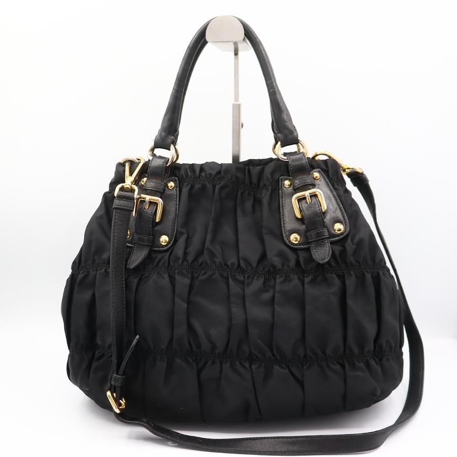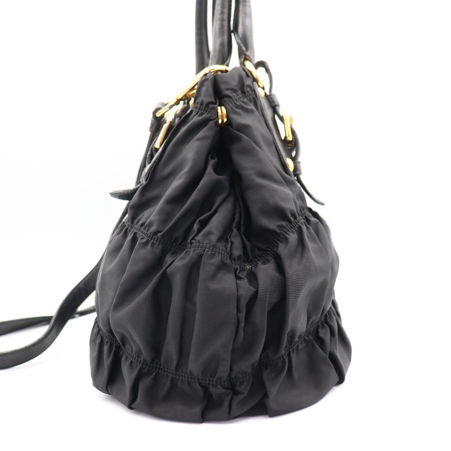 品名 ギャザー ハンドバック ショルダーバッグ ブラック ゴールド金具