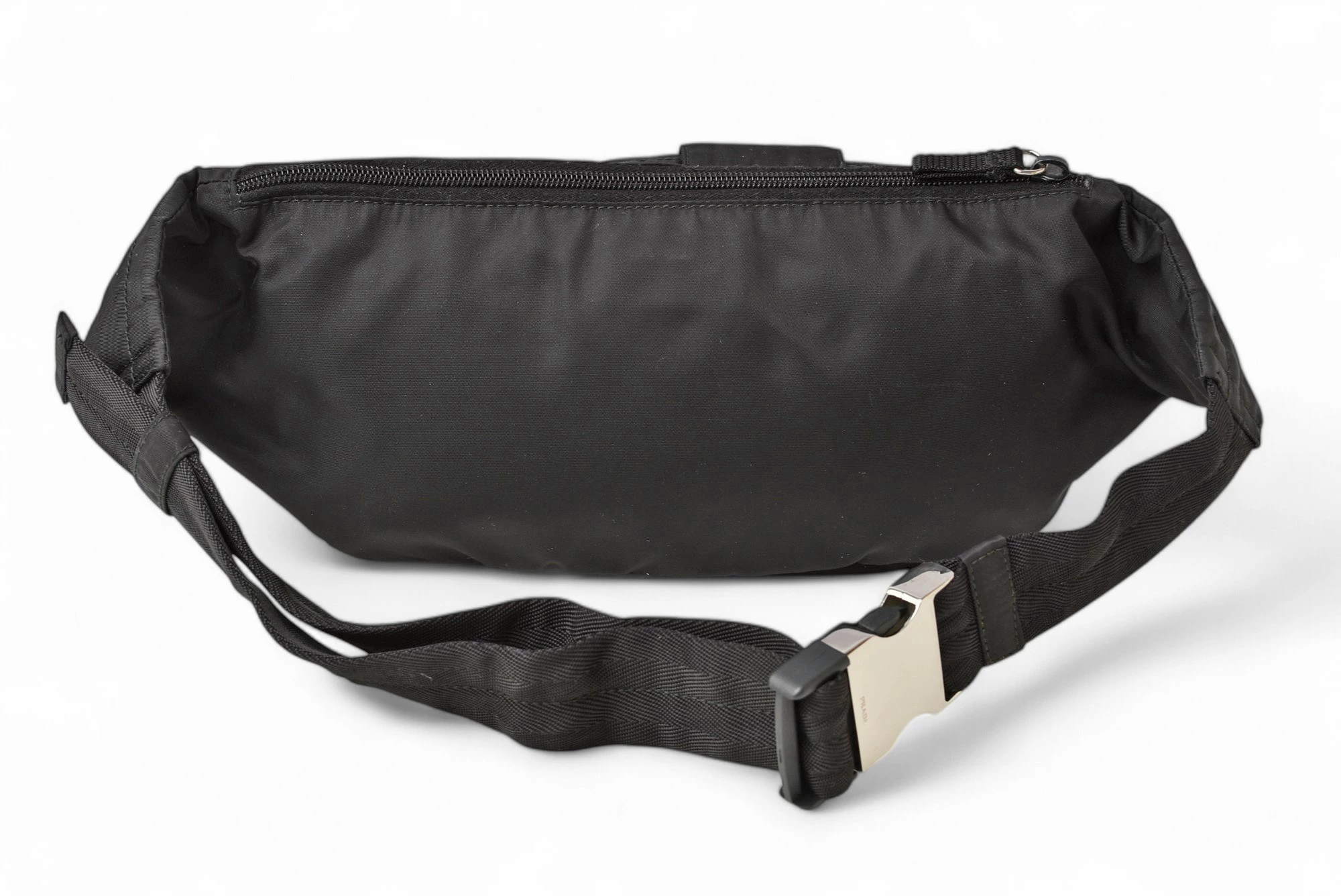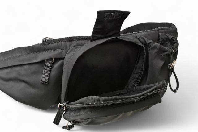 プラダより、ウエストバッグ/ウエストポーチ/ボディバッグです。センターにはPRADAのトライアングルプレートが、施され高級感があります。体のラインにフィットするナイロン素材です。サイズ調節可能で、スタイルに合わせて、お使いいただけます。男女兼用で、アウトドア、旅先でも大活躍しそうです!