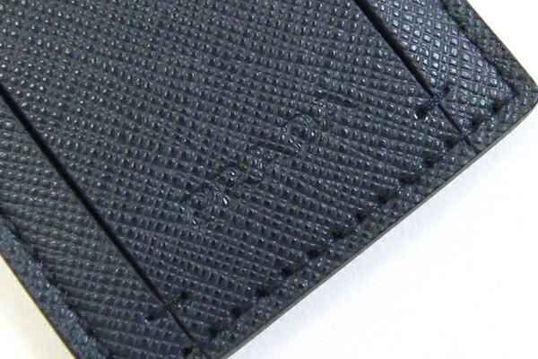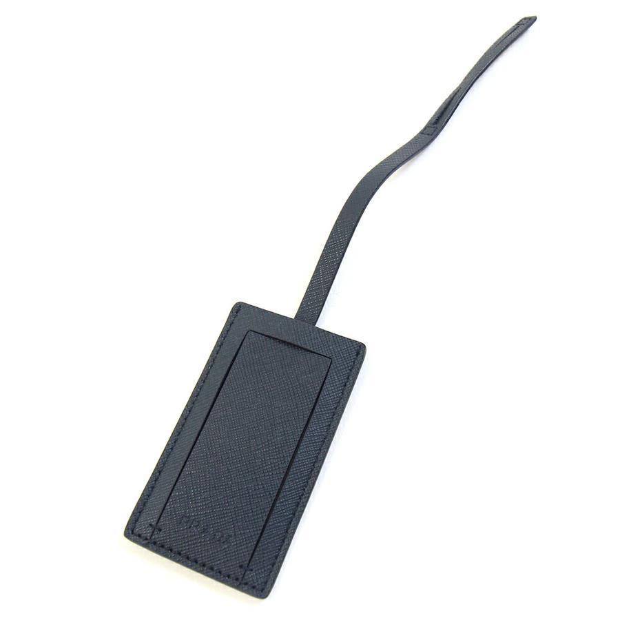 プラダショルダーストラップネイビーキャンバスレザーネームタグ付中古斜め掛け鞄バッグロゴレディースメンズPRADA