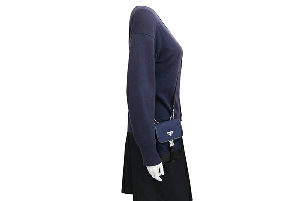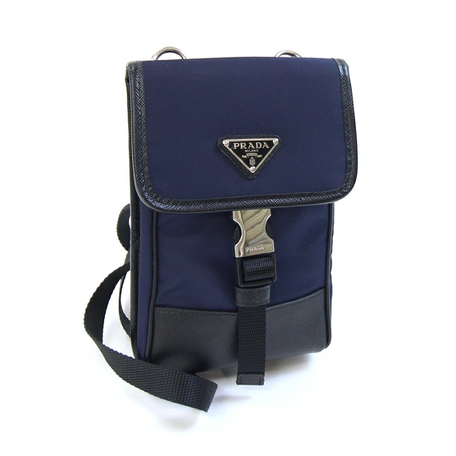 Prada Shoulder Bag 2ZH109 Navy Black Nylon Leather Used Crossbody Pouch Phone Case Mobile Phone Case Men's Women's PRADA