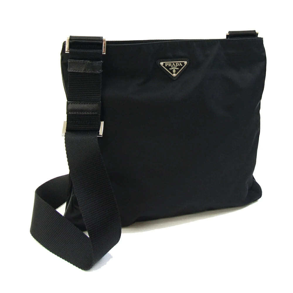 Pre-owned Prada Shoulder Bag VA0053 in Black Nylon and Leather, Crossbody Style, No Gusset, for Men and Women