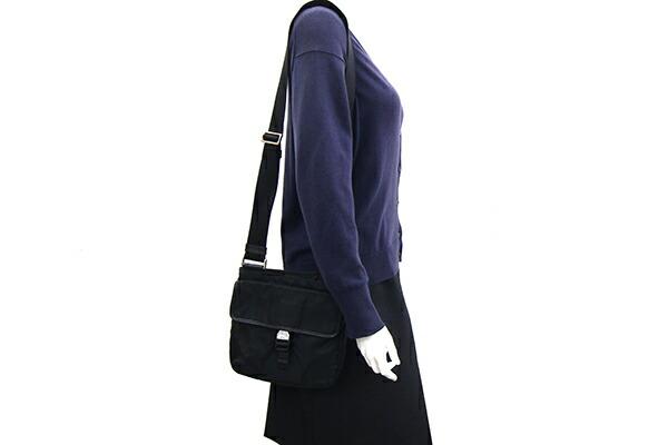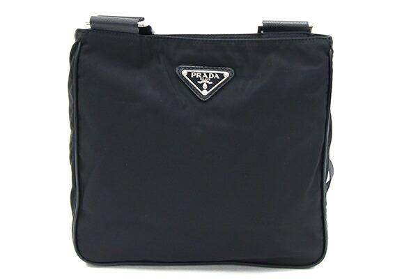 プラダショルダーバッグVA0269ブラックナイロンレザー中古斜め掛けポシェットロゴレディースメンズPRADA