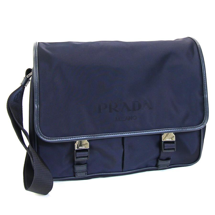 プラダショルダーバッグVA0768ネイビーナイロンレザー中古斜め掛けクロスボディメッセンジャーバッグロゴメンズユニセックスPRADA