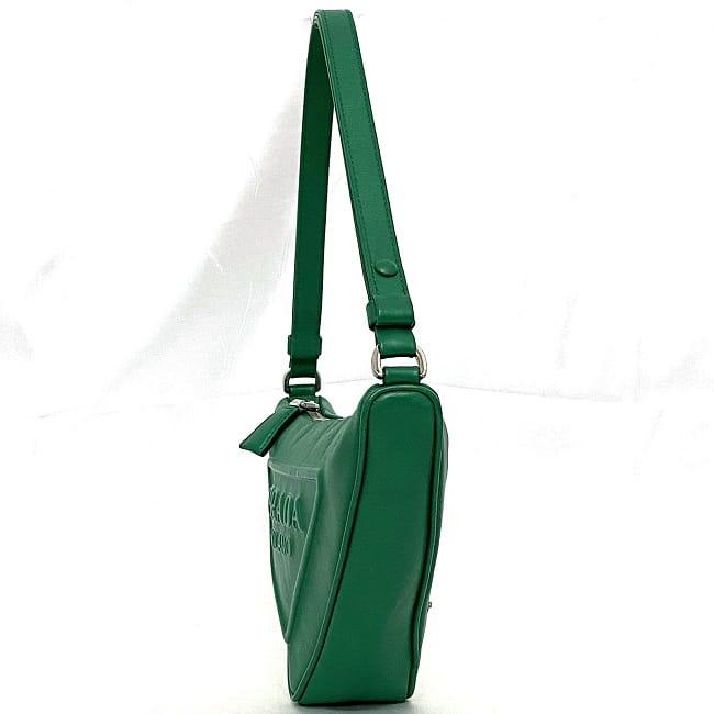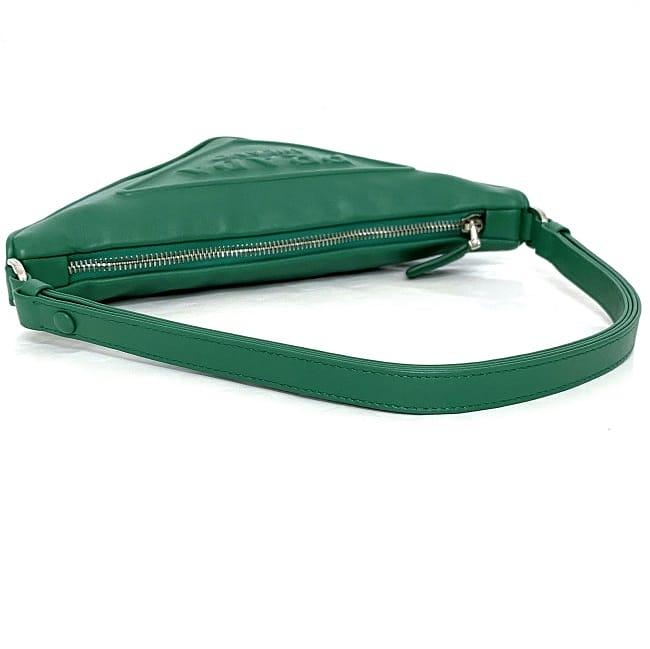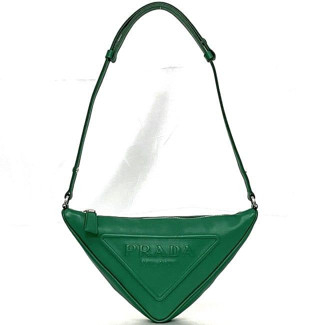 ☆---- 商品について ----☆プラダ セミショルダー バッグ f-22548 グリーン トライアングル ショルダーバッグ 美品 レザー 中古 42 PRADA 肩掛け アクセサリー ポーチ ファスナー 三角 ロゴ プレート 緑 定番 人気 レディース メンズ セミショルダー 本革 ブランド 本物 鑑定済み