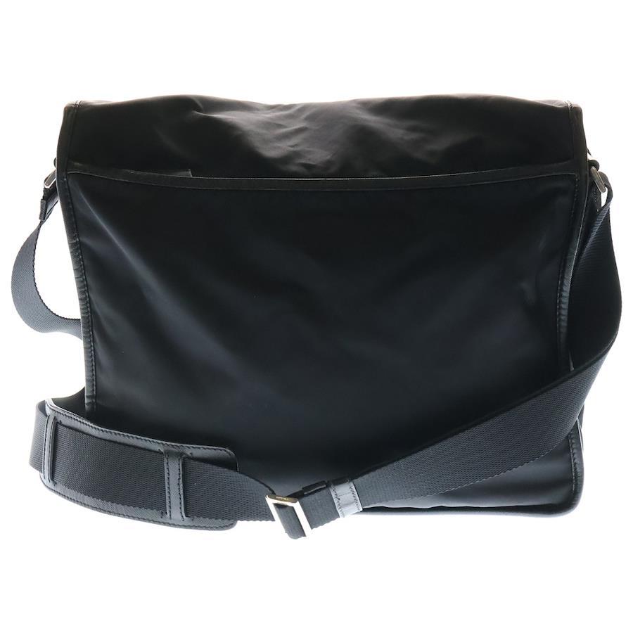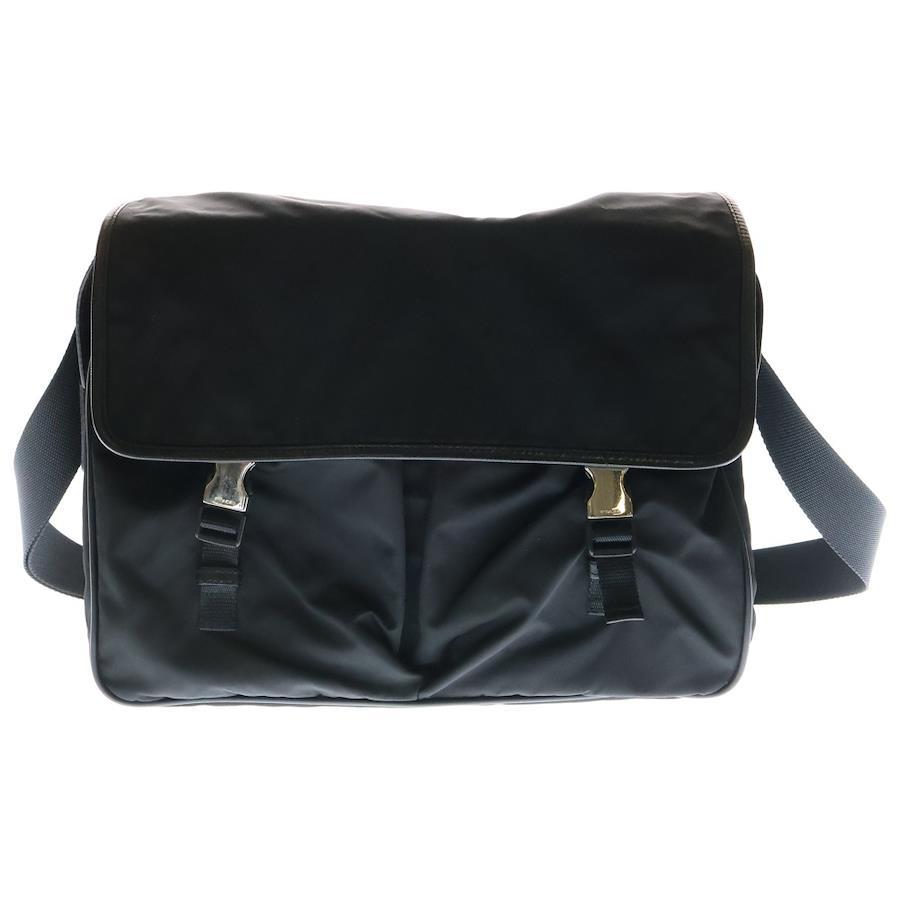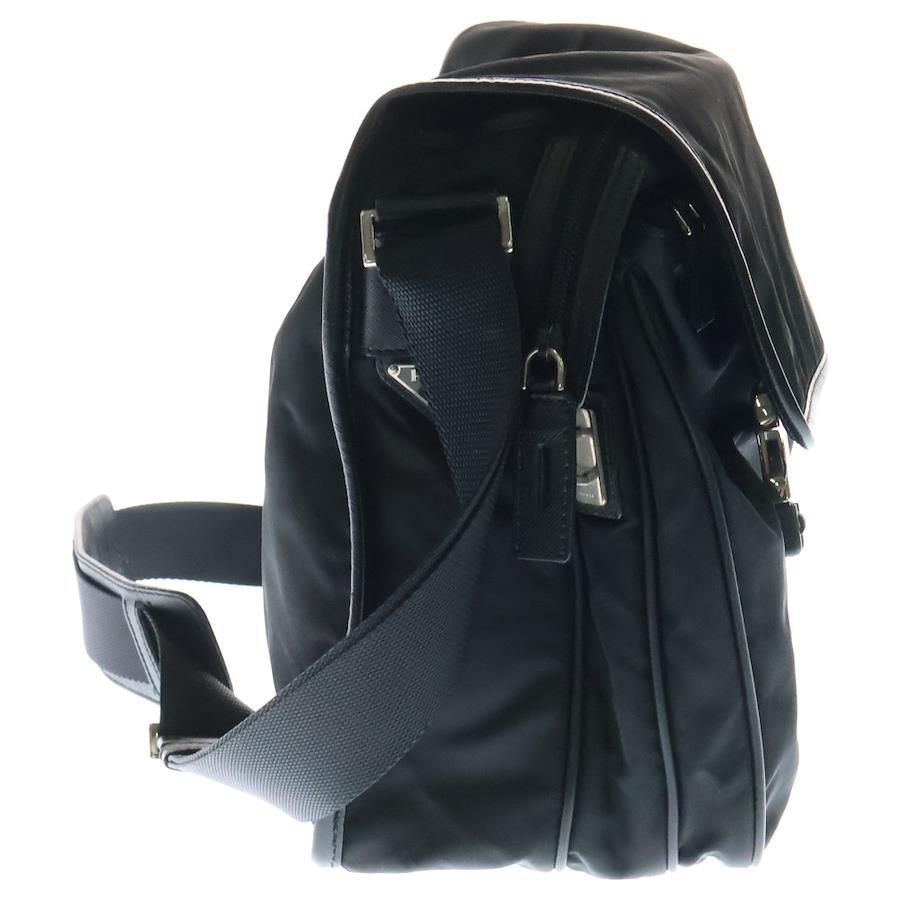 [モデル]テスートメッセンジャーバッグ ショルダーバッグ 斜め掛けバッグ ブラック シルバー金具 ナイロン ロゴ三角プレート V165