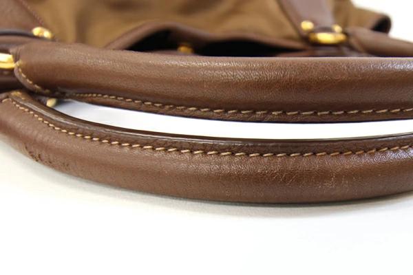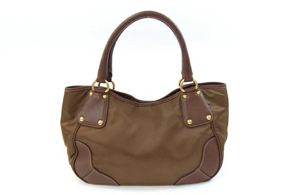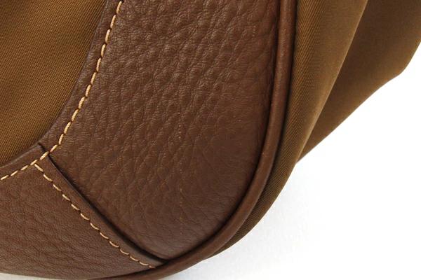 | 状態 | 外側:ナイロン地に薄汚れあり。レザー部分所々小キズ・スリキズ多少あり。 内側:レザーに薄スレあり。 金具:小キズ、スレ、クスミあり。 |
