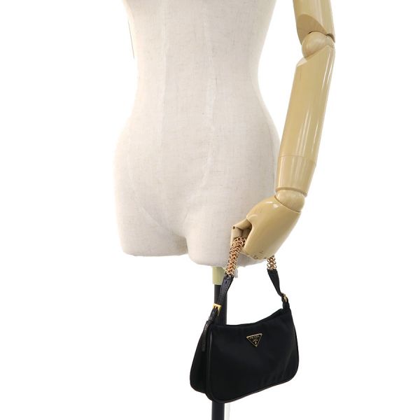 プラダ ナイロン・チェーンアクセサリーポーチプラダからカジュアルながらもエレガントさ溢れる『ナイロン・チェーンアクセサリーポーチ』のご紹介です。プラダ定番のナイロン素材でチェーンハンドが高級感溢れるデザインです。間口はオープンタイプで内部には付属の手鏡が収納できるポケットが備わっております。メイク用品、タバコが入るコンパクトなサイズ感です。状態はAランクとなっており、素材特有の本体の型崩れ、表面のスレ感、金具部分の小傷、手鏡の小傷、内部の擦れ感を感じます。目立った使用感、ダメージは抑えられた印象です。是非いかがでしょうか?付属:手鏡、ギャランティカード(国外ブティック、日付なし)