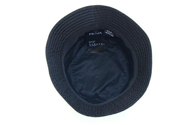 プラダハットRe-Nylonバケットハット2HC137ブラックリサイクルポリアミドXLサイズ中古帽子ロゴレディースメンズPRADA