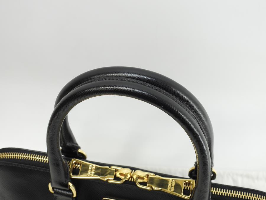 品名 : ハンドバッグ トートバッグ アルマ型メーカー : プラダ (PRADA)型番・素材 : サフィアーノレザーライン・色 : 三角ロゴ ネロ ゴールド金具参考定価 : 不明サイズ : W26.5-32.5 x H21 x D13 x G32 cm製造番号 : 113/12総重量 : 770g 本体重量 : 700g付属品 : 写真の中に写っているものです