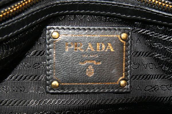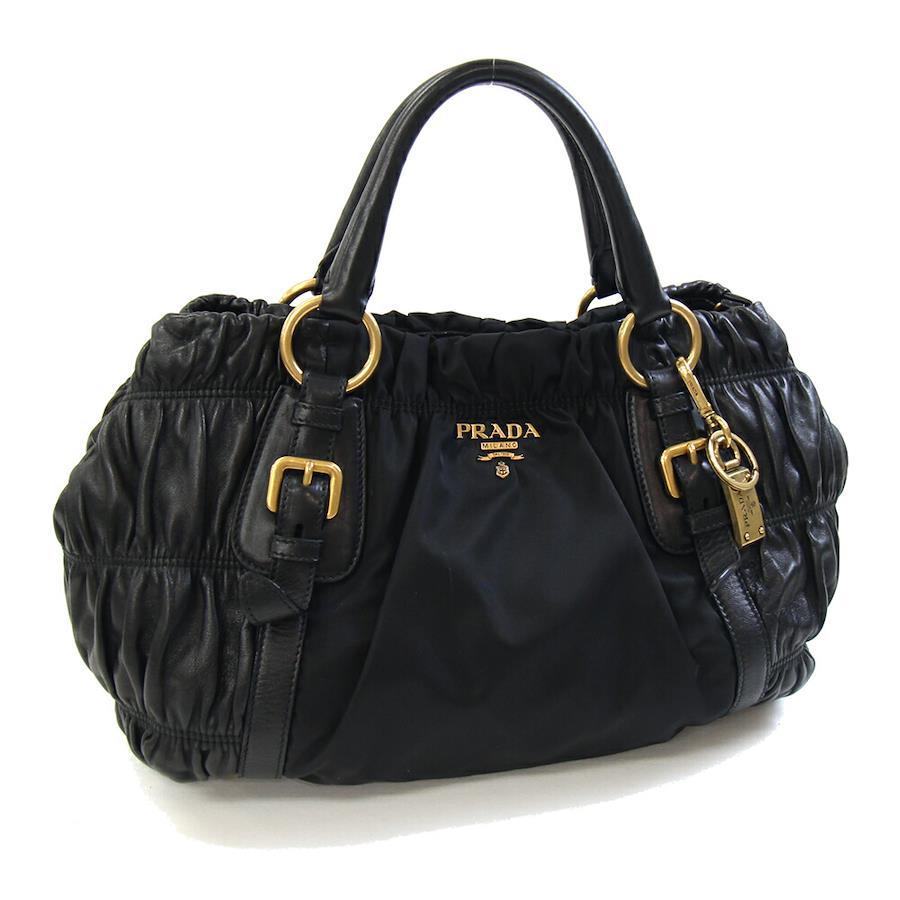 プラダハンドバッグBN1791ブラックレザーナイロン中古ギャザーロゴチャーム付レディースPRADA