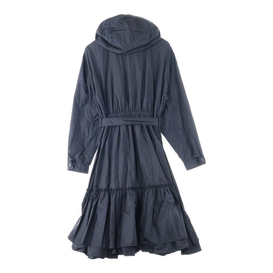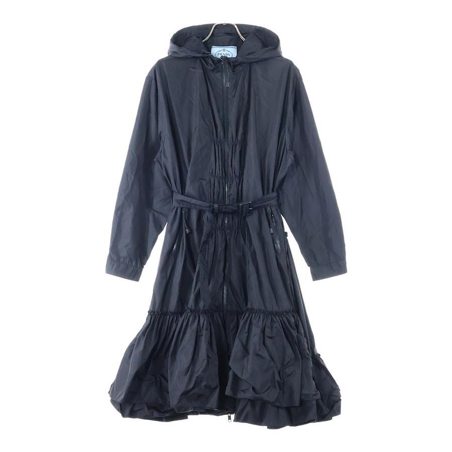 [モデル]フロントジップ フード付き フレア ロングコート ジャケット ベルト付き レディース ブラック 291304