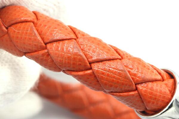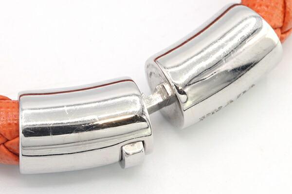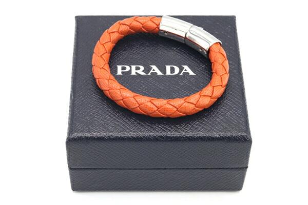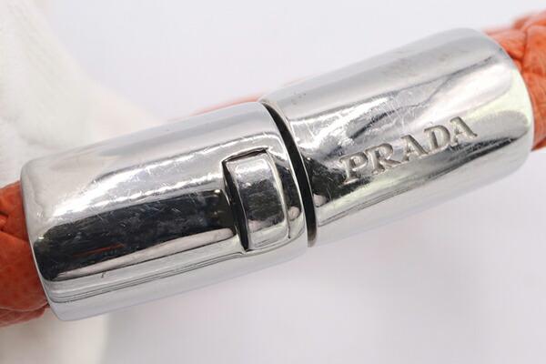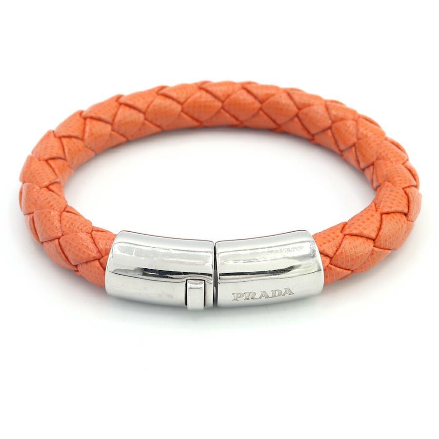 プラダブレスレットオレンジシルバー金具レザー中古腕輪アクセサリーバングル編み込みレディースメンズPRADA