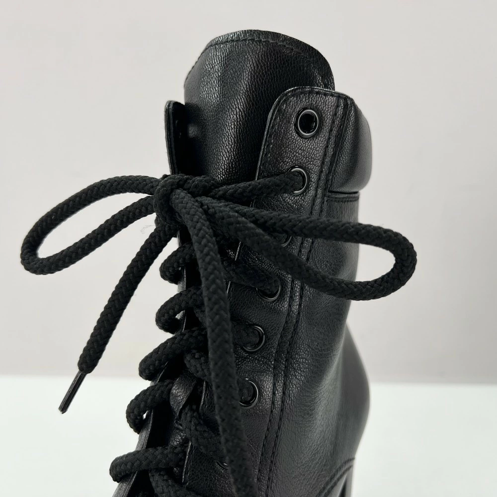 [40% OFF] Prada Women's High Heel Lace-Up Boots, Size 37 1/2, Leather, Black, Winter [Pre-owned]