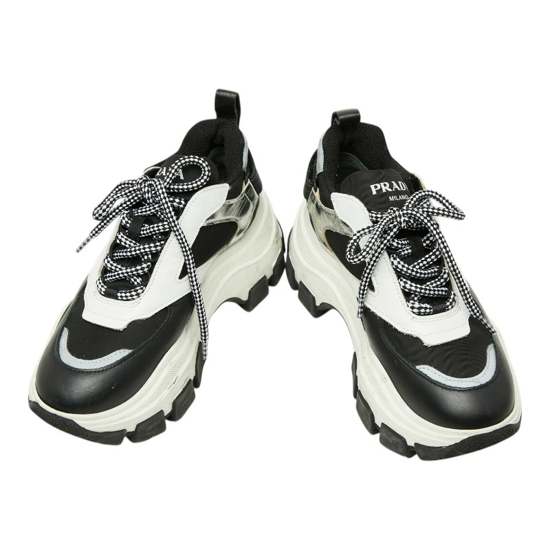 - プラダ プラットフォーム ハイカットスニーカー サイズ36 ブラック ホワイト シルバー ラバー ナイロン レディース PRADA 【中古】