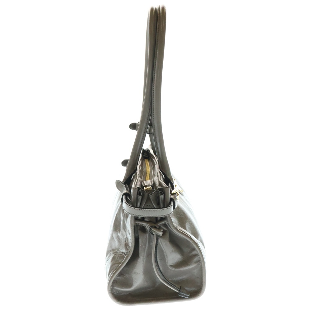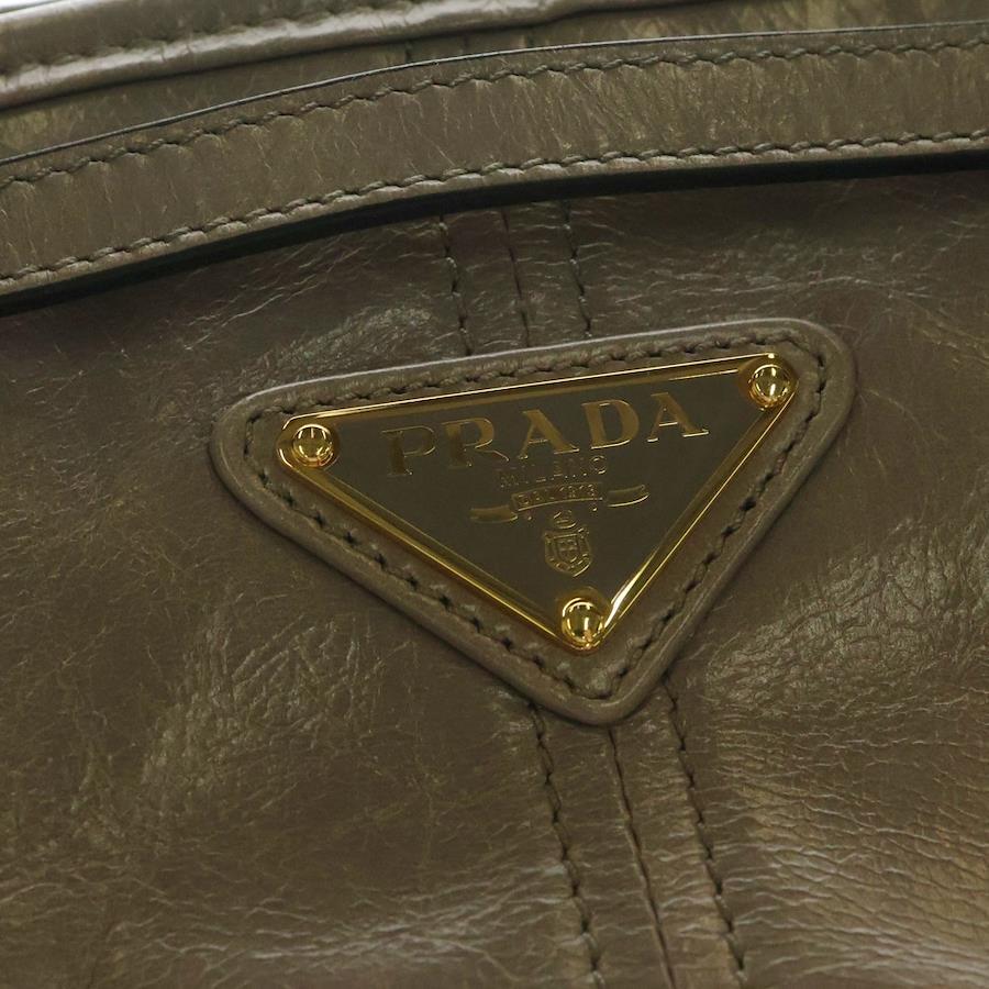 Prada Bonnie Triangle Logo Plate Handbag in Greige Leather with Gold Hardware, 1BA426, Medium