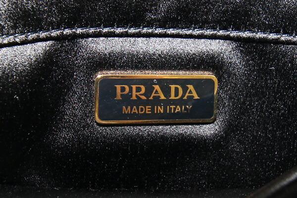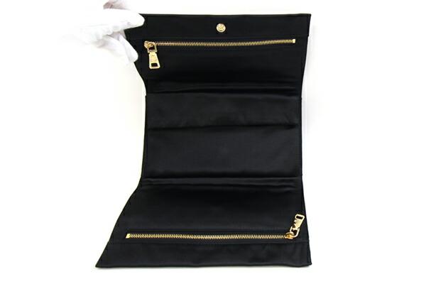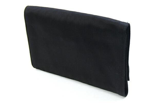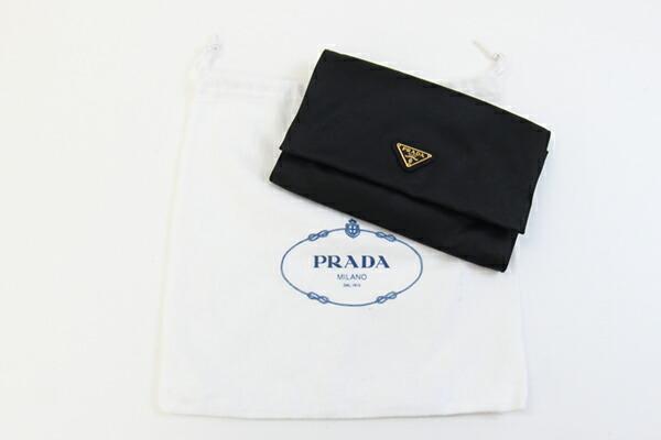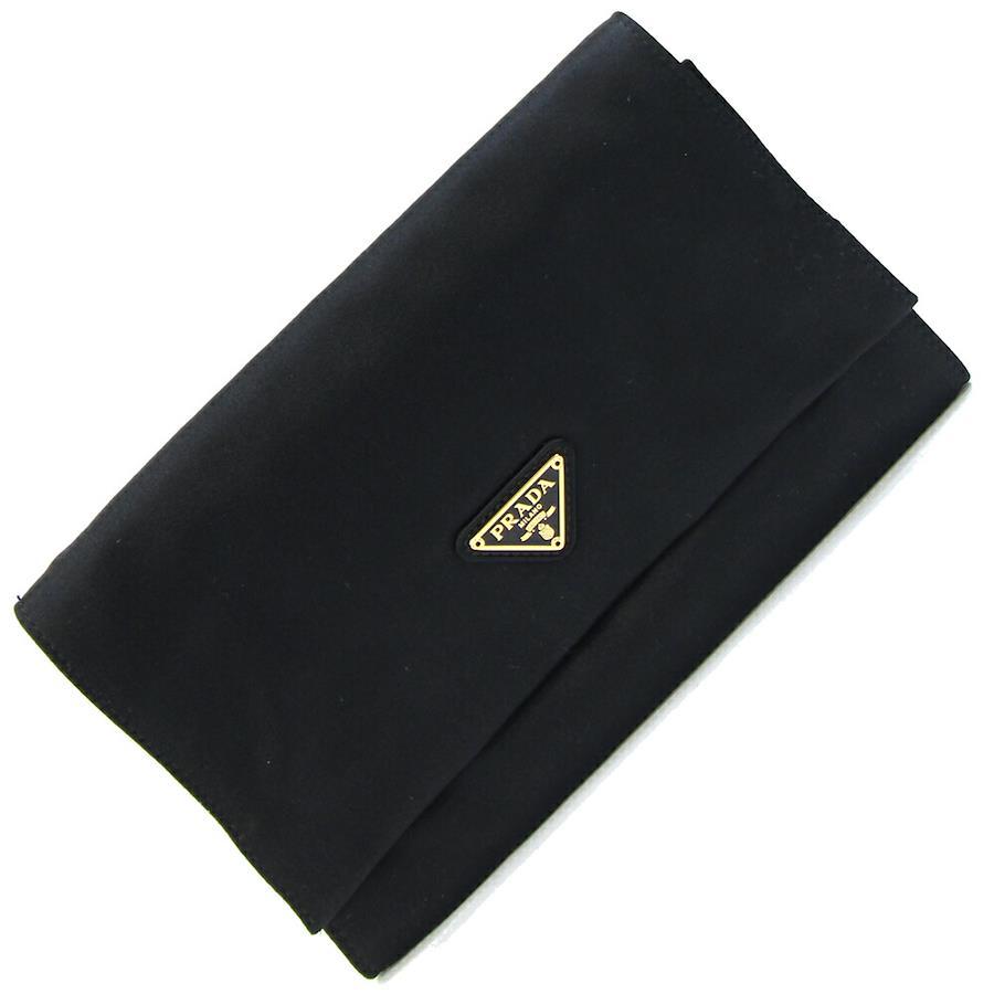 プラダポーチ2NC037ブラックサテン中古三つ折り小物入れクラッチバッグロゴレディースPRADA
