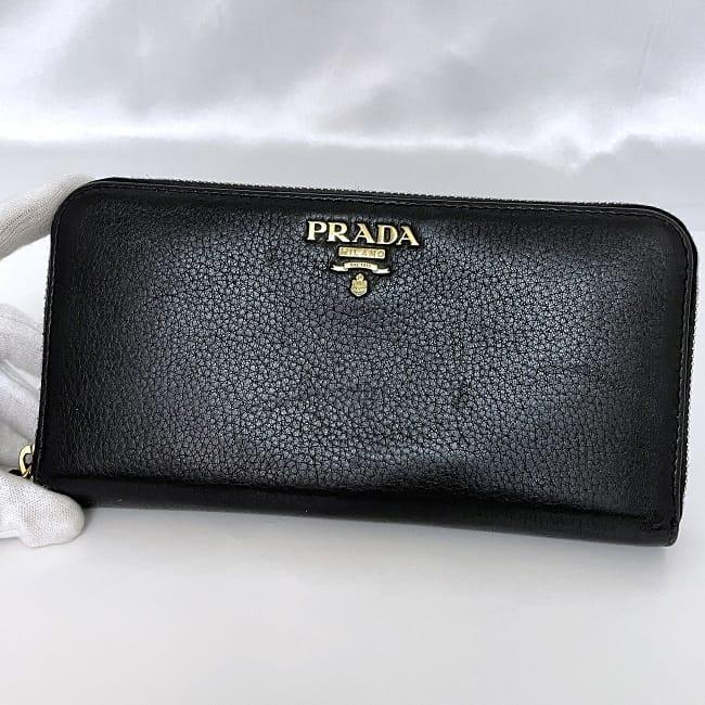 プラダ ラウンドファスナー 長財布 ec-23707 ブラック NERO 1ML506 財布 レザー 中古 62B PRADA ロゴ 黒 ファスナー ロング ウォレット ソフトレザー メンズ レディース 定番 人気 シンプル ゴールド金具 本革 ワンポイント ブランド 本物 鑑定済み