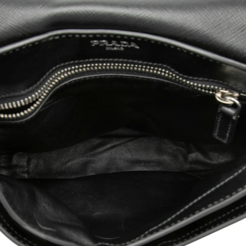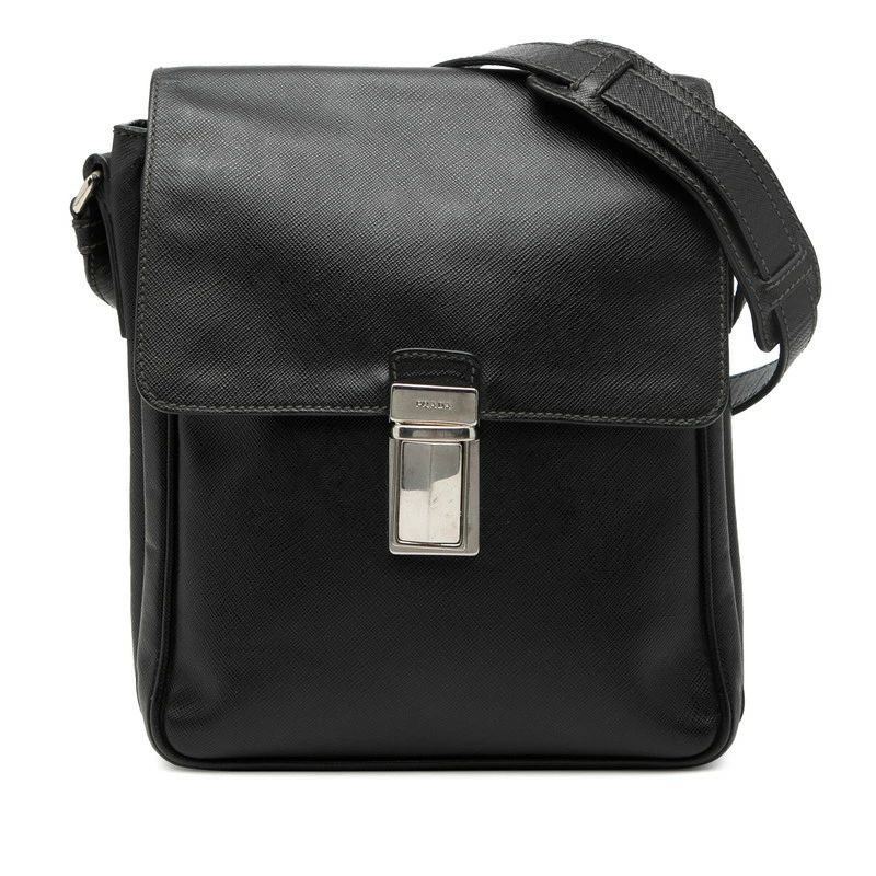- プラダ ロゴ ショルダーバッグ ブラック サフィアーノレザー レディース PRADA 【中古】