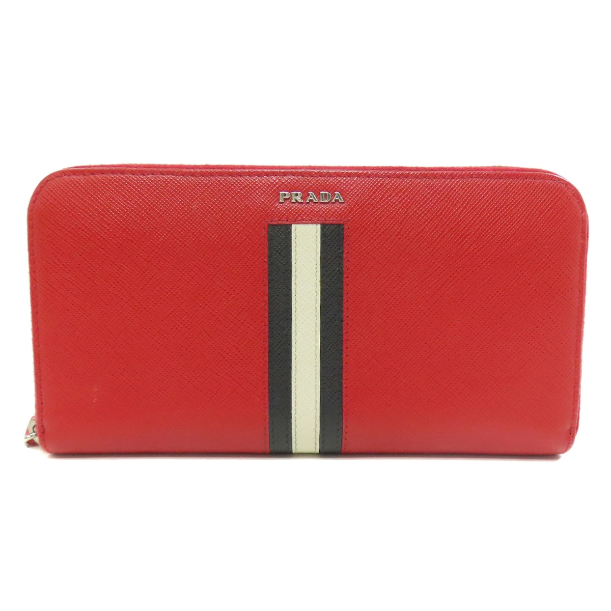 レディース長財布(小銭入れあり)PRADAカラー:レッド系サフィアーノコンディションAランク
