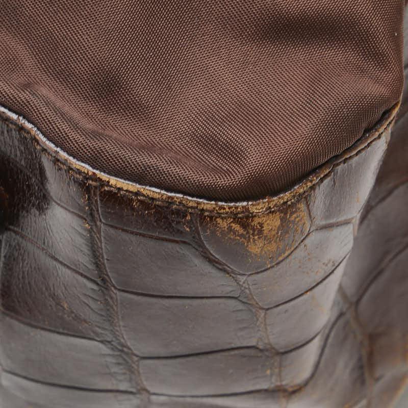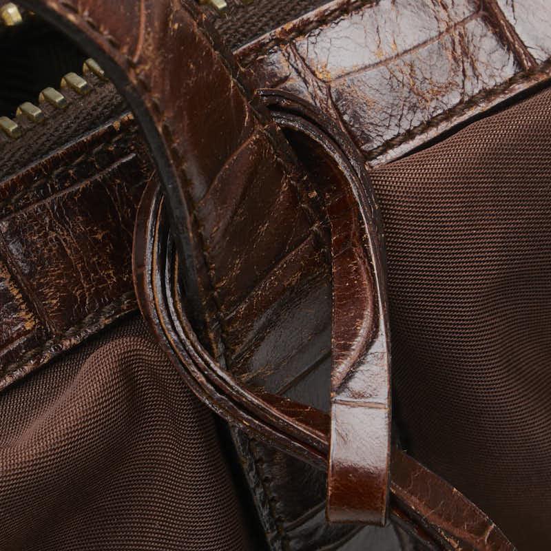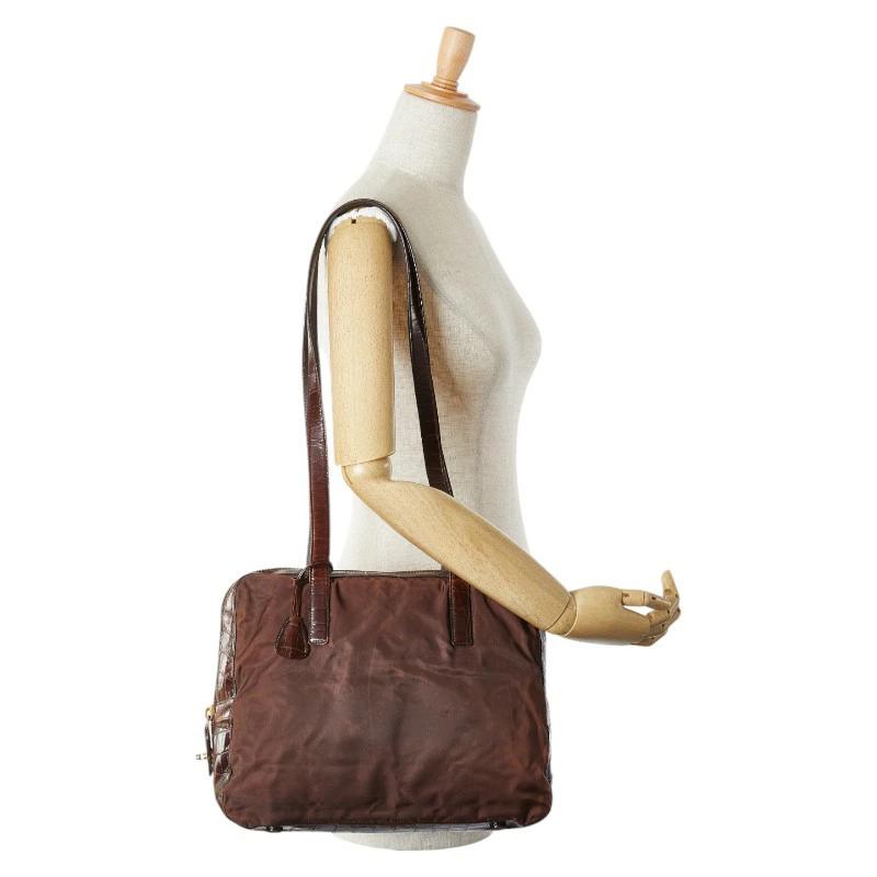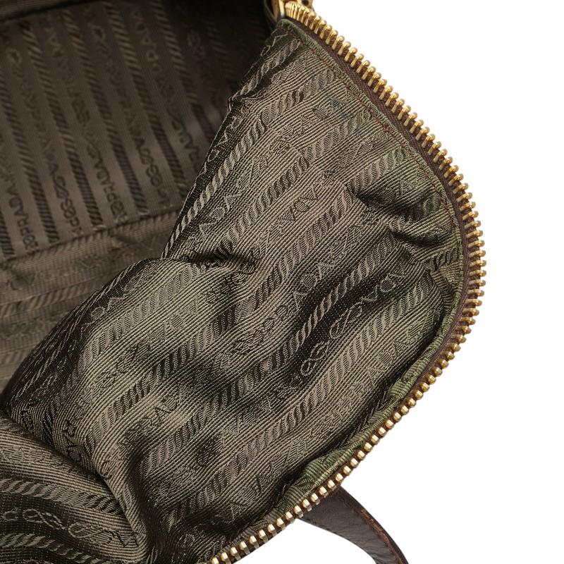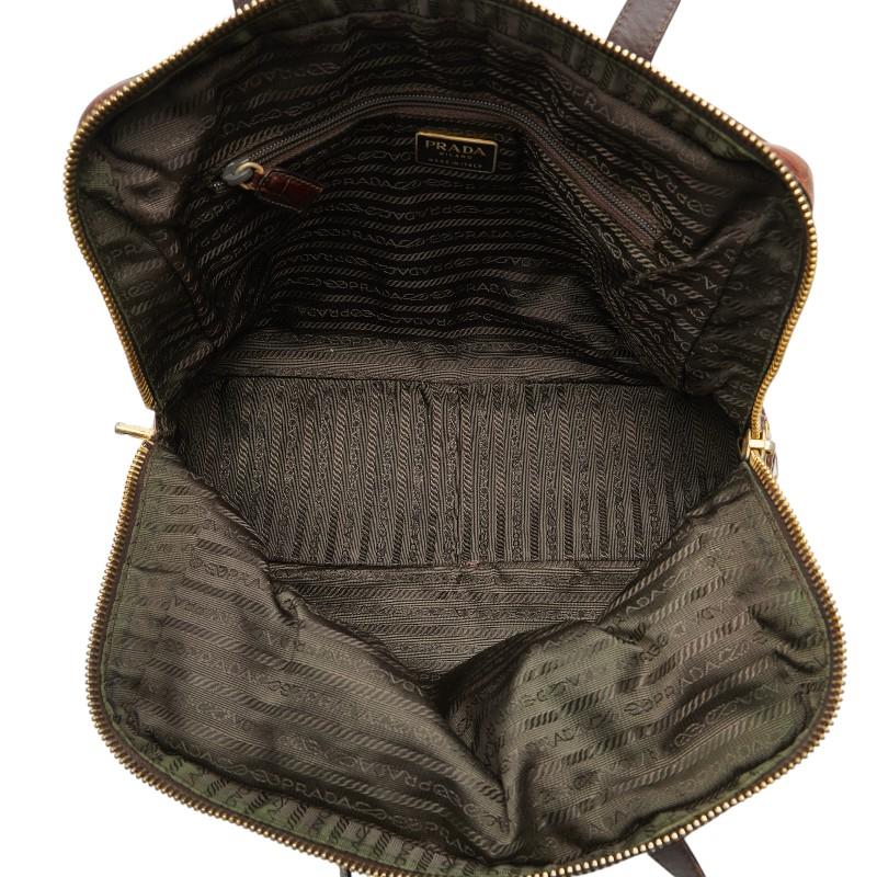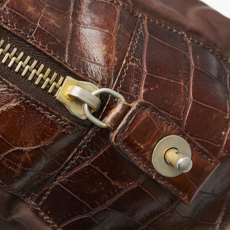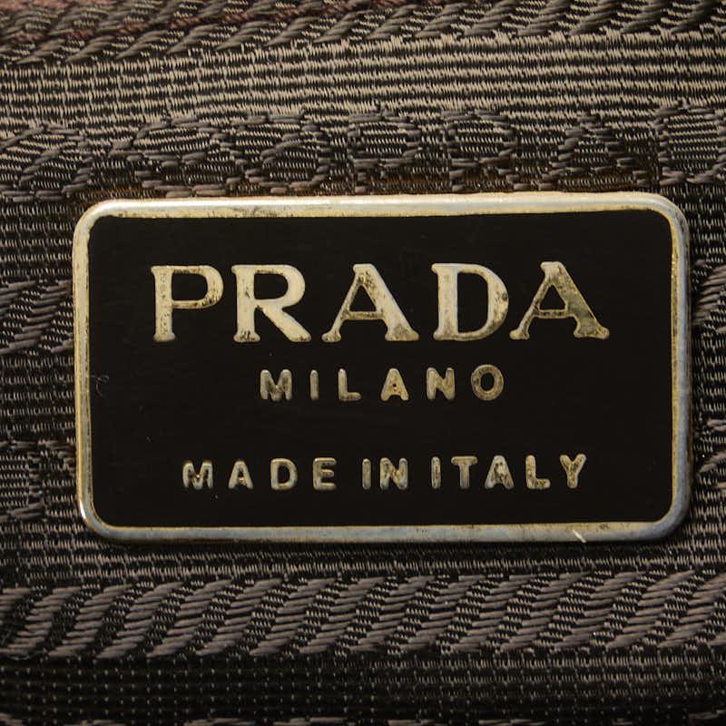 Pre-owned Prada triangle logo plate handbag/shoulder bag in brown nylon and leather. Women's.