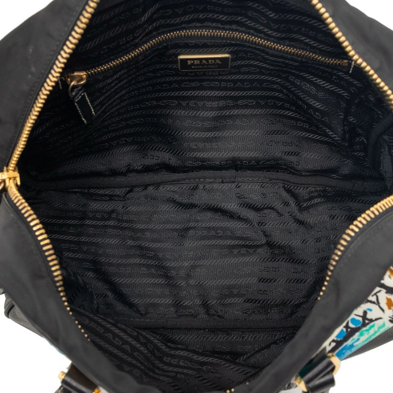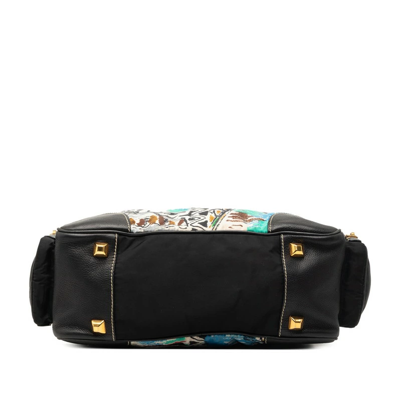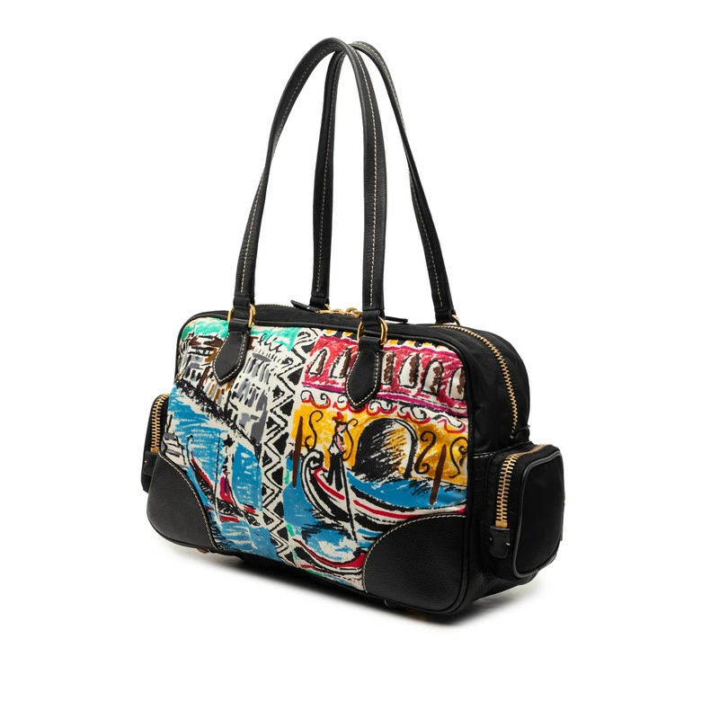 - プラダ 三角ロゴプレート ベネチア ハンドバッグ ブラック マルチカラー ナイロン レザー レディース PRADA 【中古】
