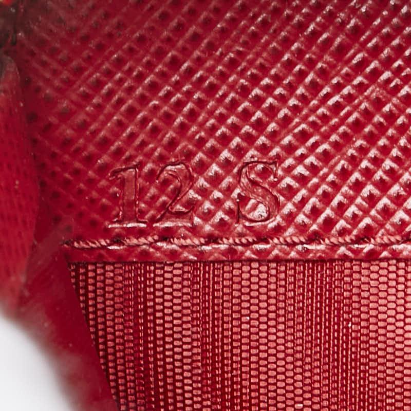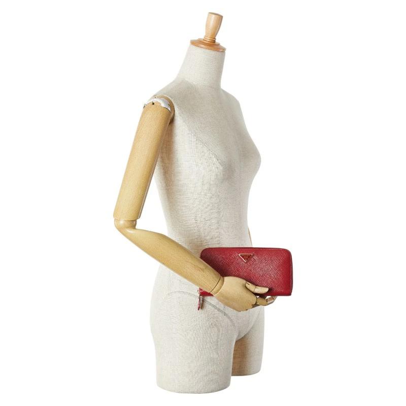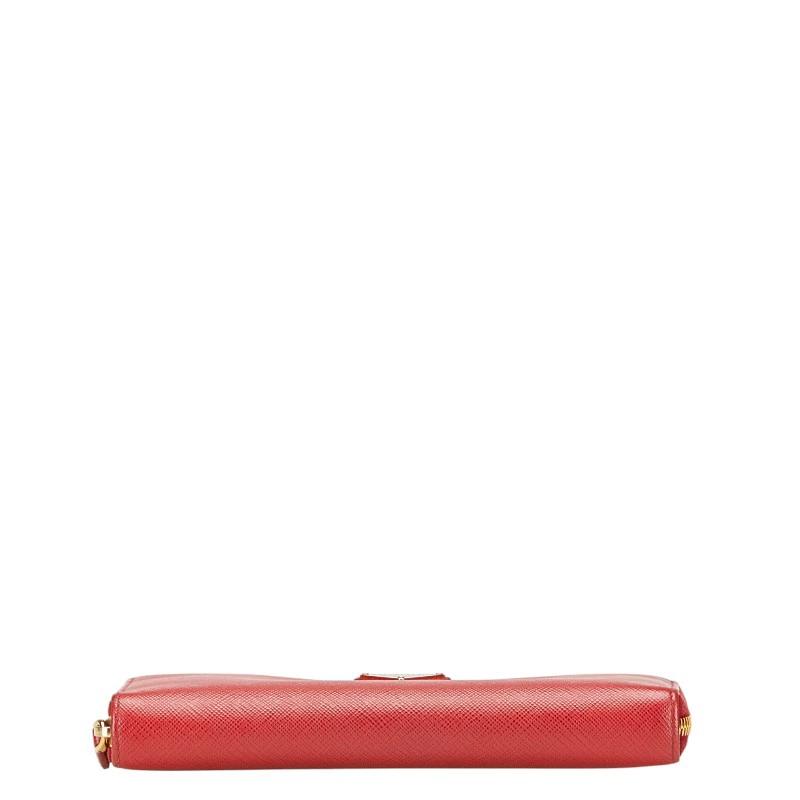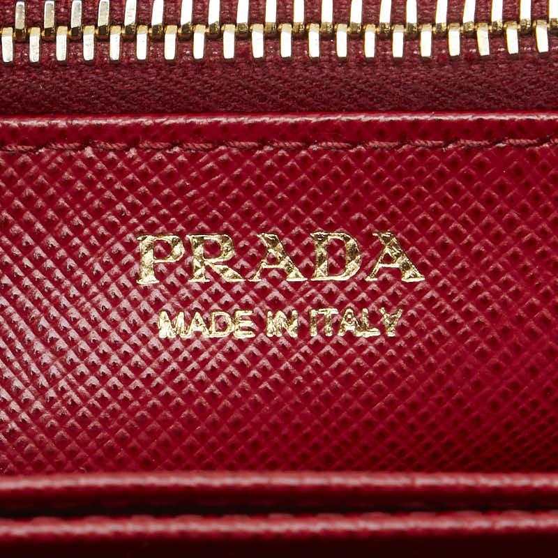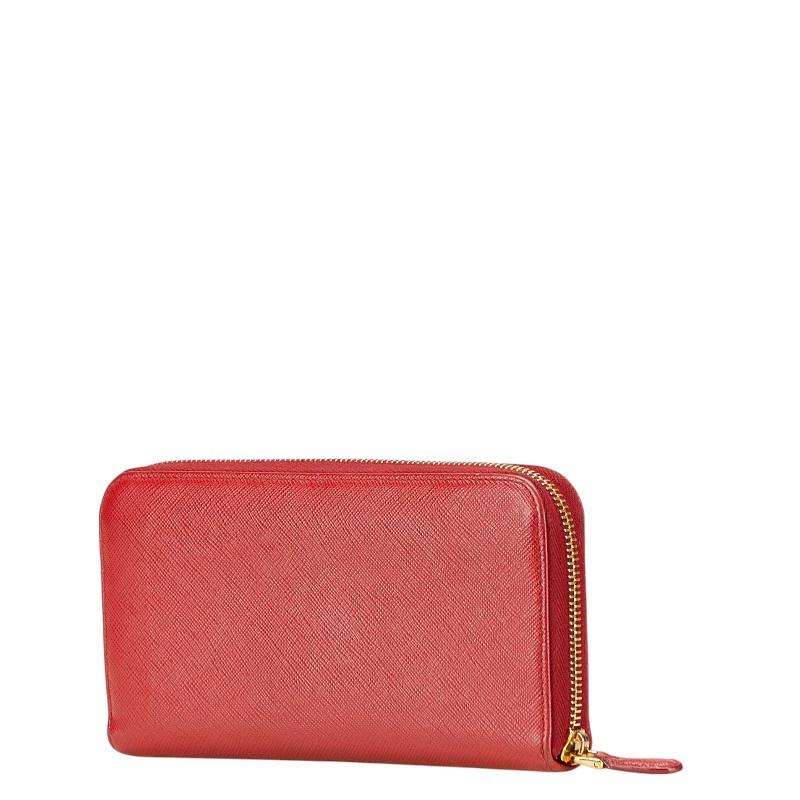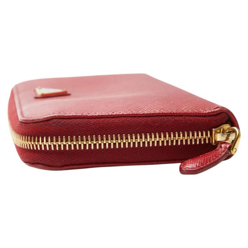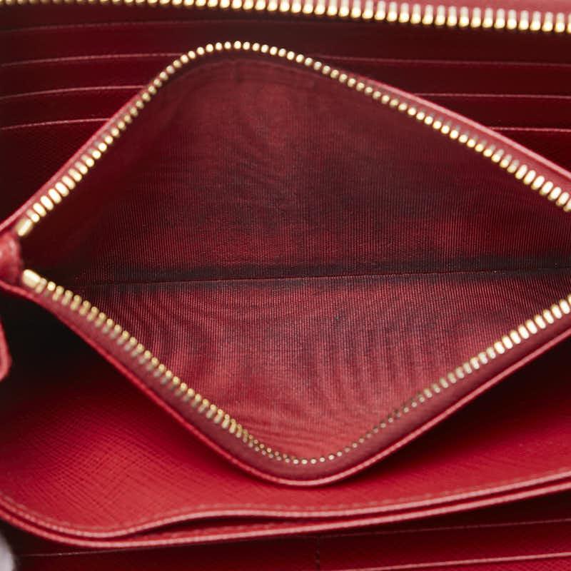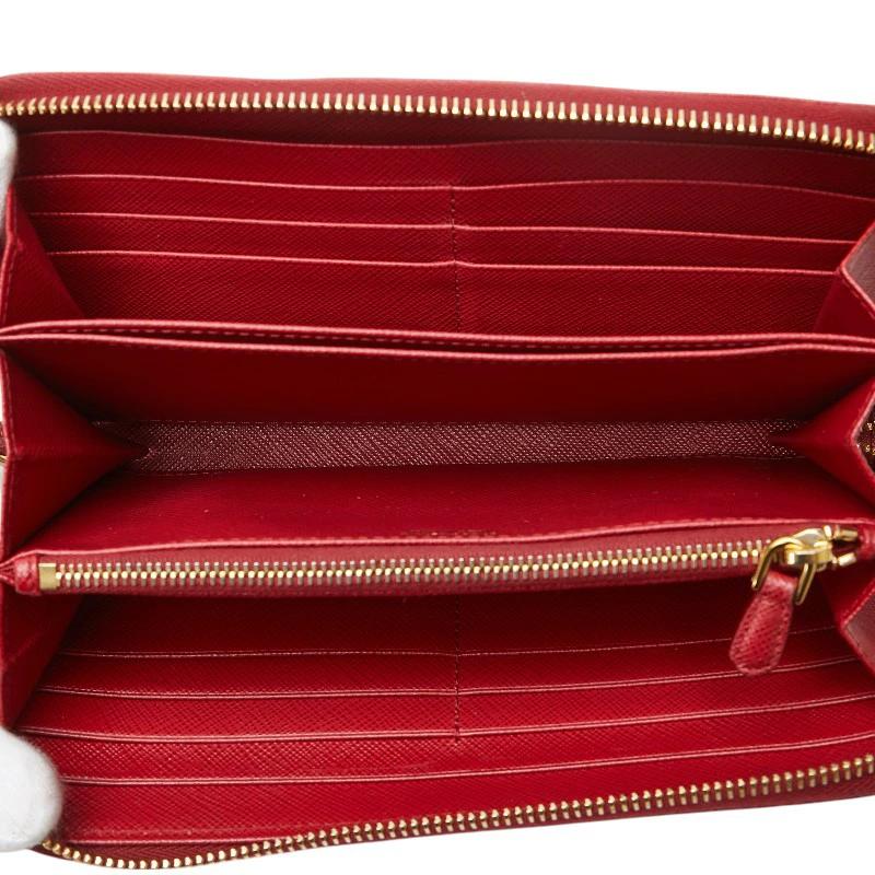 Pre-owned Prada Triangle Logo Plaque Round Zip Long Wallet 1ML506 in Red Saffiano Leather. Women's.