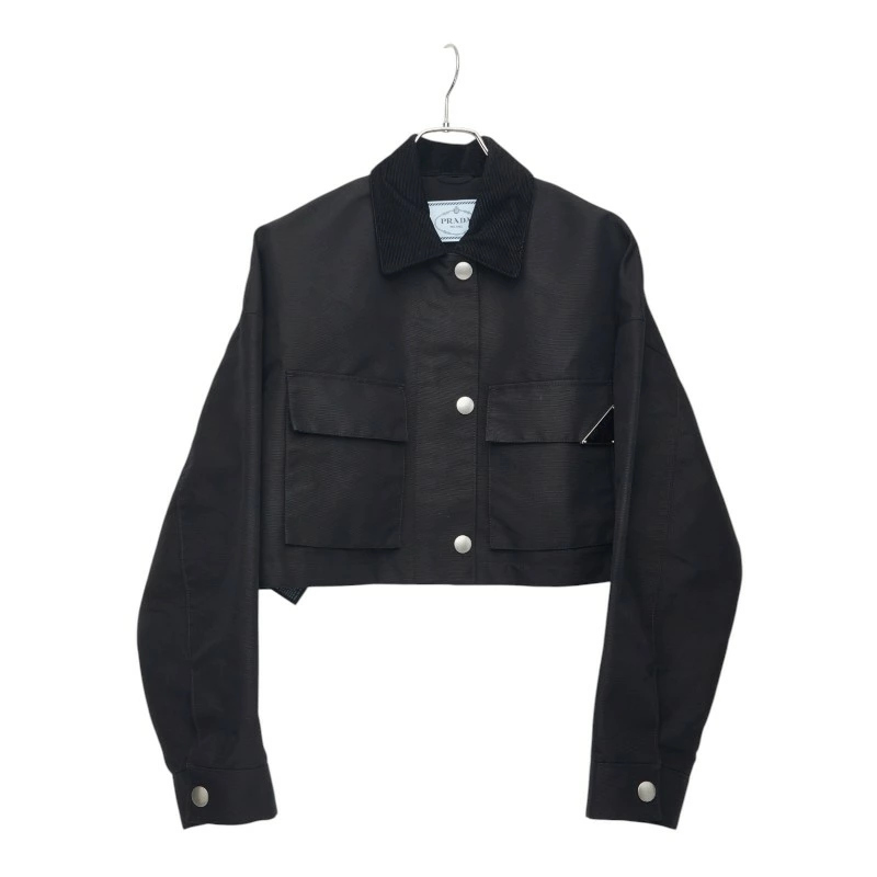 - プラダ 三角ロゴプレート テクニカルキャンバス クロップド ブルゾンジャケット サイズ40 29X103 ブラック ナイロン コットン レーヨン レディース PRADA 【中古】