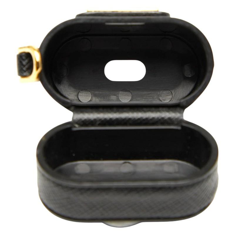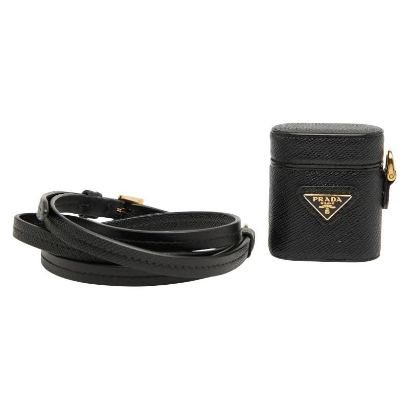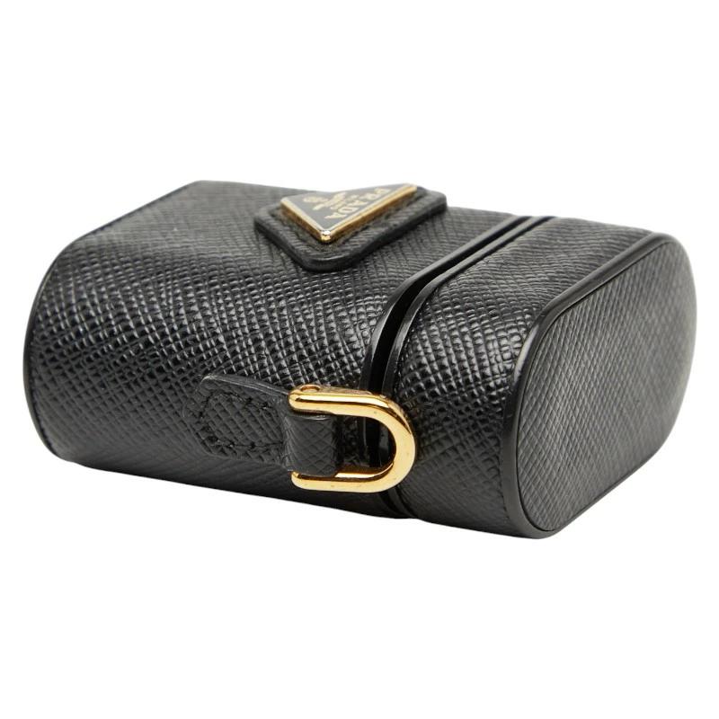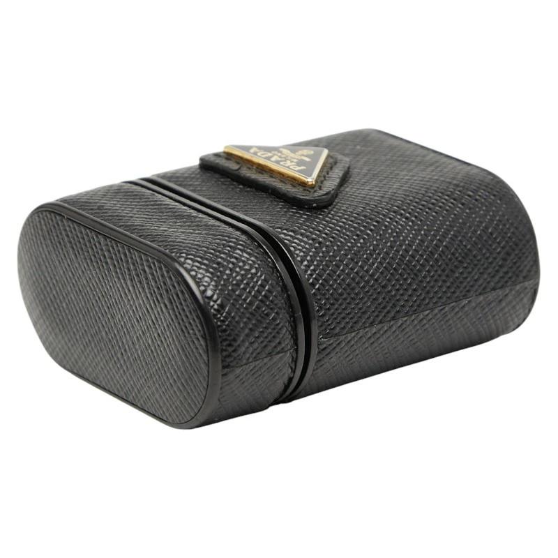 - プラダ 三角ロゴプレート AirPodsケース 1ZD002 ブラック レザー レディース PRADA 【中古】