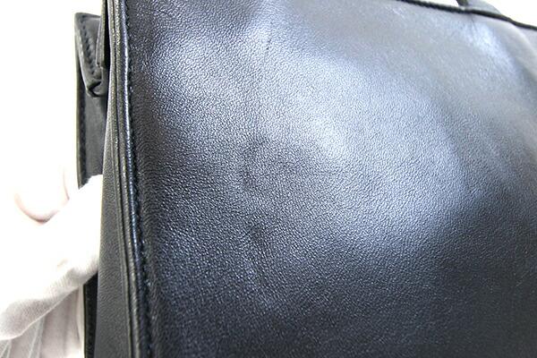 状態:外側:多少型崩れあり。所々小キズ、薄スレ、押しキズあり。角にもスレ、持ち手のフチにコーティング割れあり。内側:レザー部分に薄スレあり。金具:小キズ、スレあり。※香水ニオイ強くあり。
