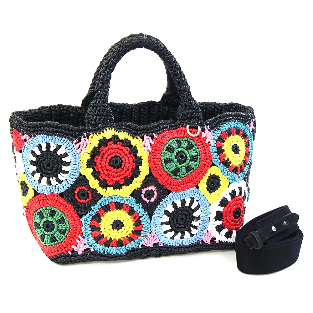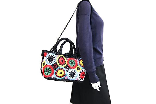 Pre-owned Prada 2-Way Handbag 1BG889 Black Raffia Shoulder Bag/Crossbody Bag/Women's Canapa Basket Bag