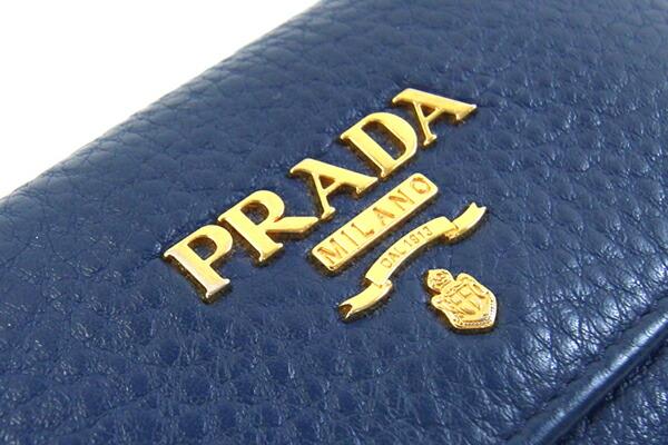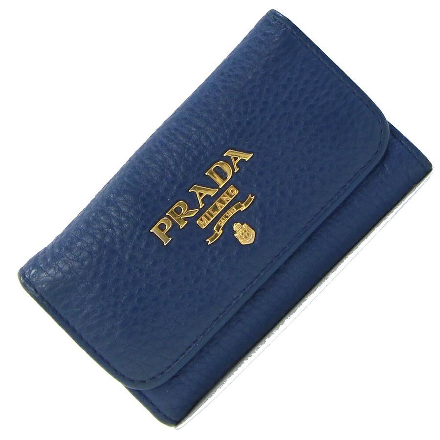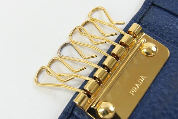 プラダ6連キーケース1PG222ブルーゴールド金具レザー中古鍵カギロゴレディース女性PRADA