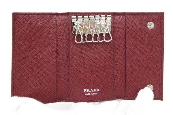 プラダ6連キーケース1PG222ボルドーレザー中古キー鍵カギロゴレディースPRADA