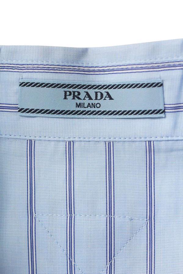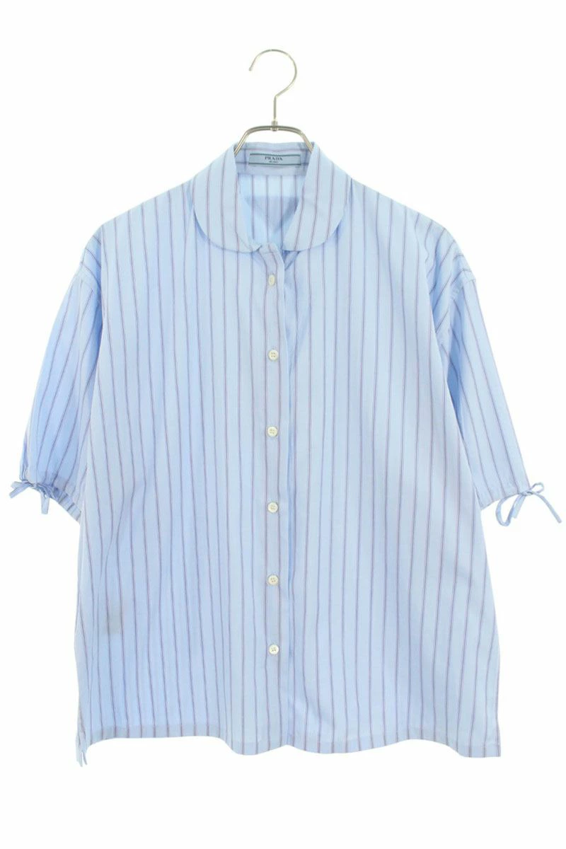 PRADA P450I Striped Poplin Short Sleeve Shirt (Light Blue) Size: 38 [109052] [BS99] [Women's] [Pre-owned] bb356#rinkan*A