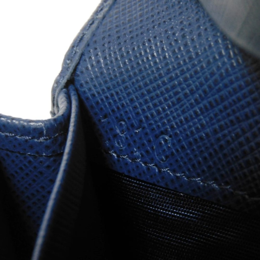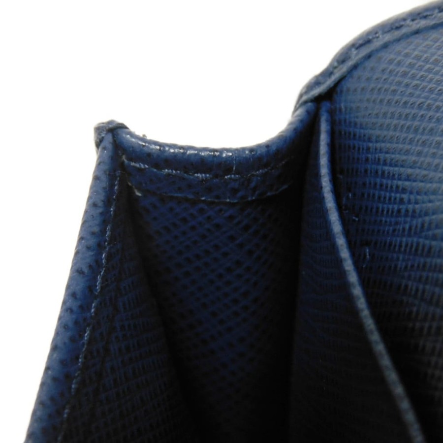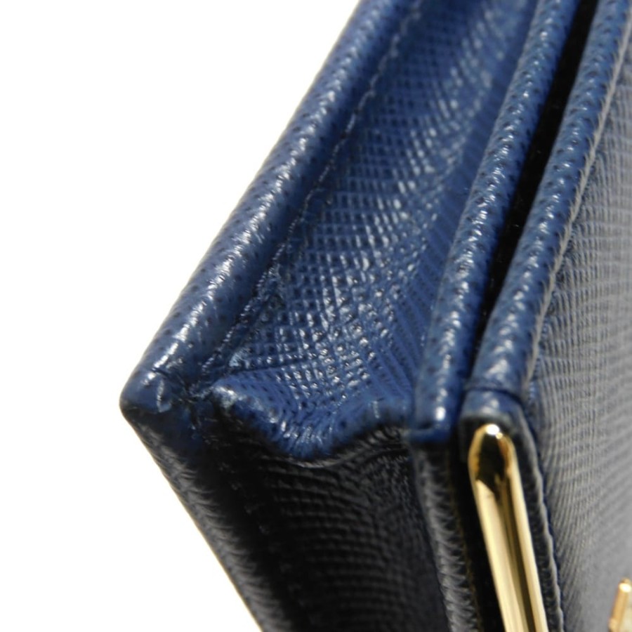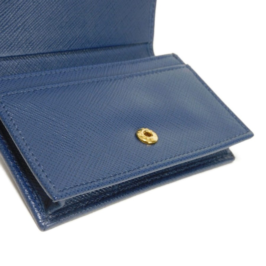 | 型押しカーフレザーにプラダのメタルロゴとプレートがあしらわれた「サフィアーノ メタル カードホルダー」スナップ式二つ折りカードケースです。 |