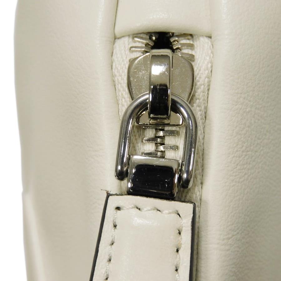 | スムースレザーにトライアングルロゴのエンボス加工とエナメルロゴのトライアングルロゴがあしらわれた「トライアングル レザー クロスボディ」ショルダーバッグです。 |