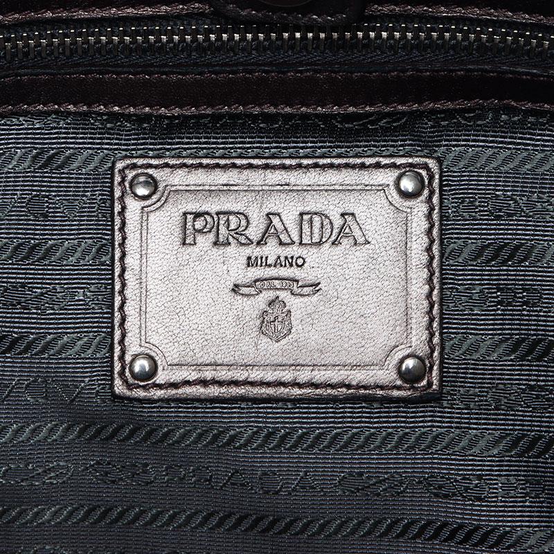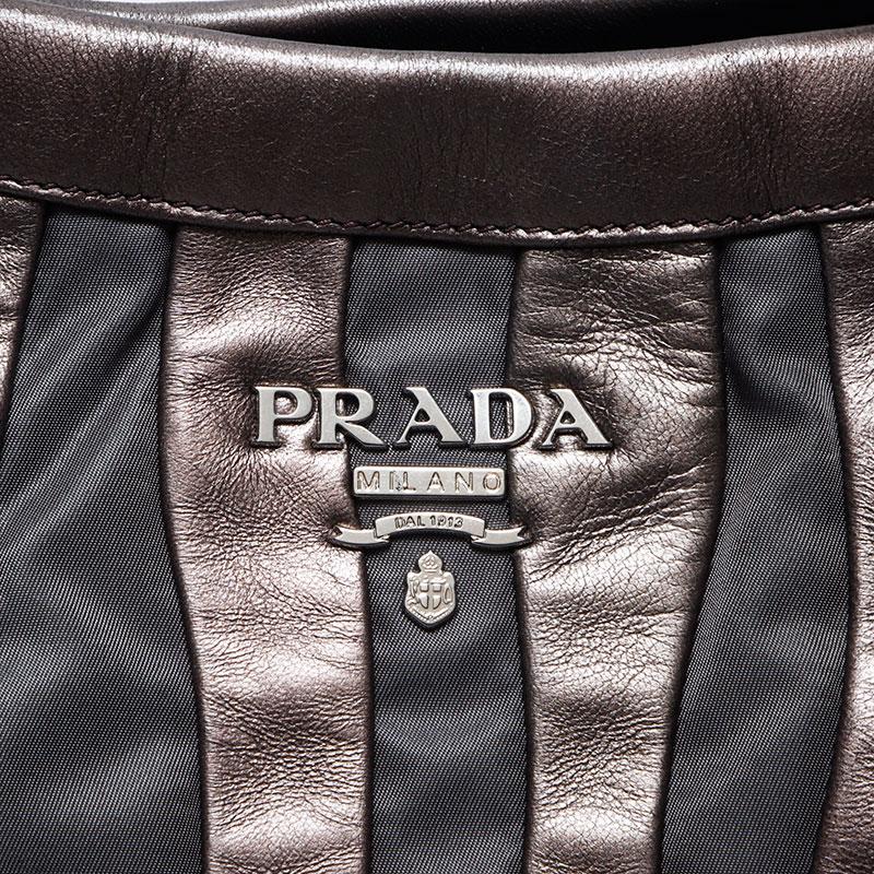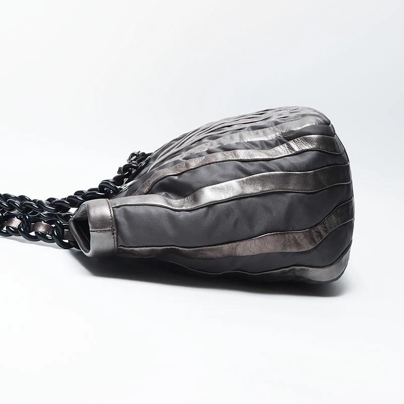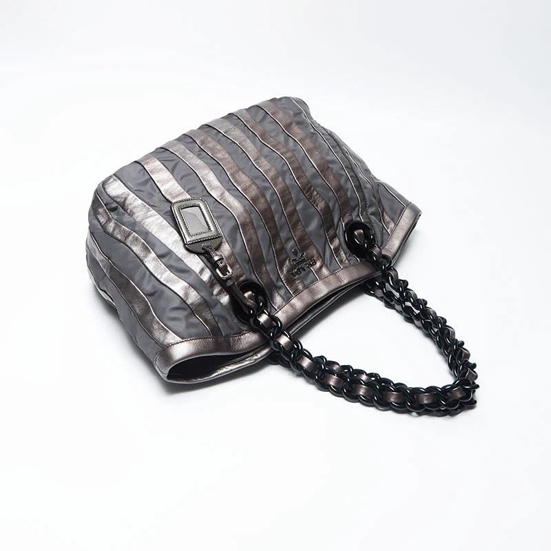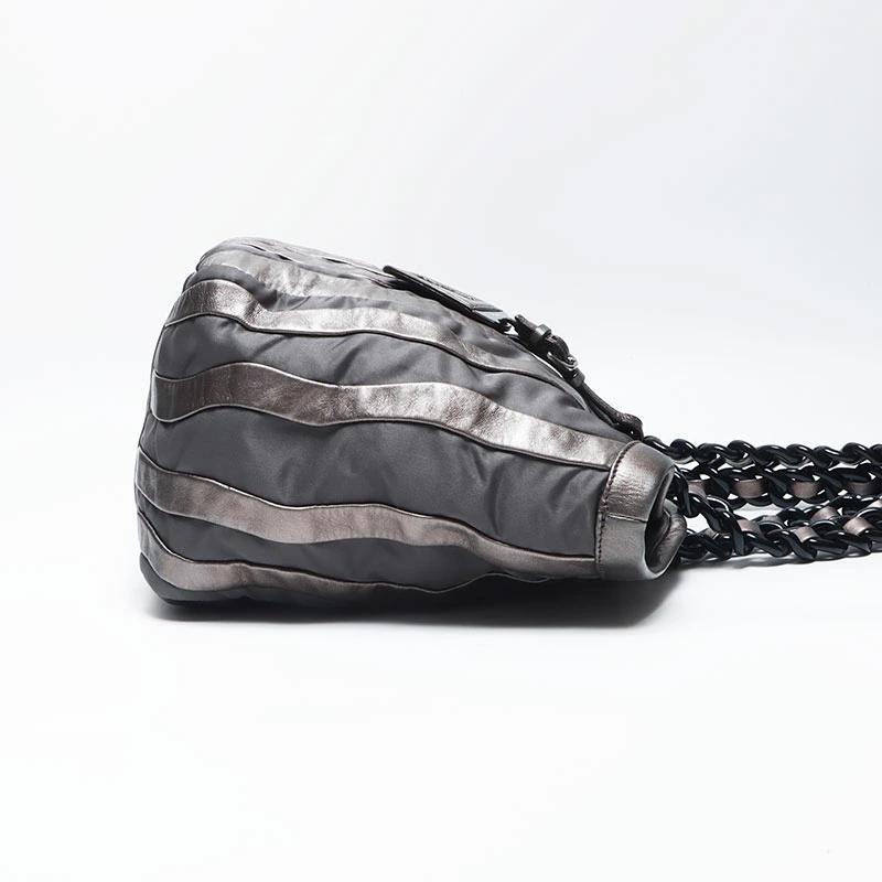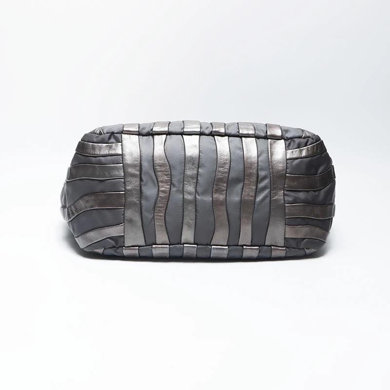 Pre-owned Prada nylon tote bag with leather chain and silver hardware, gray leather, WS4583.